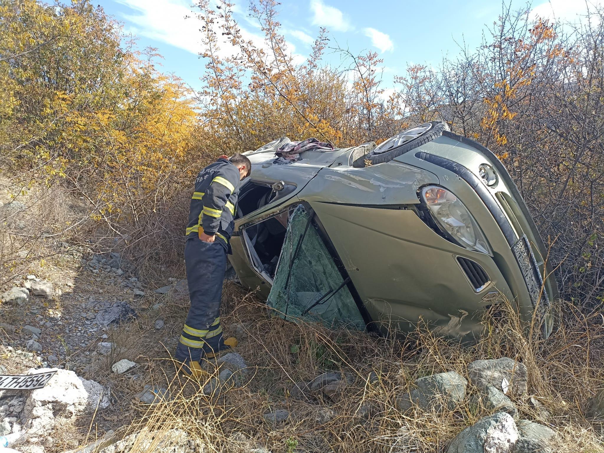 Otomobil bariyere çarpıp devrildi: 2 yaralı