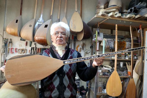 73 yaşındaki emekli müzik öğretmeni, yaptığı sazları 3 ülkeye ihraç ediyor