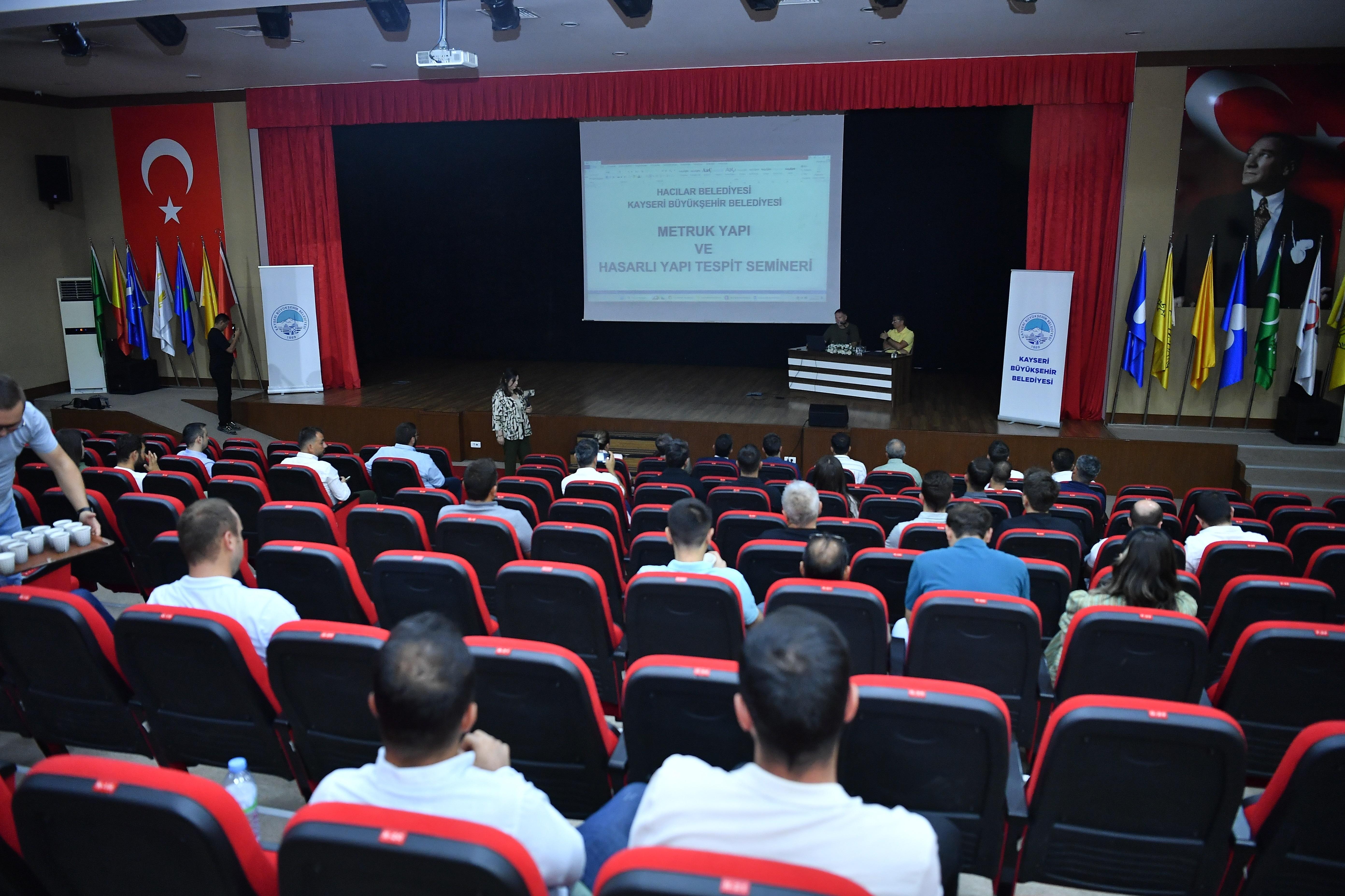 KAYSERİ, (DHA)- KAYSERİ Büyükşehir Belediyesi, kentsel riskleri azaltma ve depreme dayanıklı şehir hedefi doğrultusunda Hacılar ilçesinde “Metruk Yapı ve Hasarlı Yapı Tespit Semineri” düzenledi.