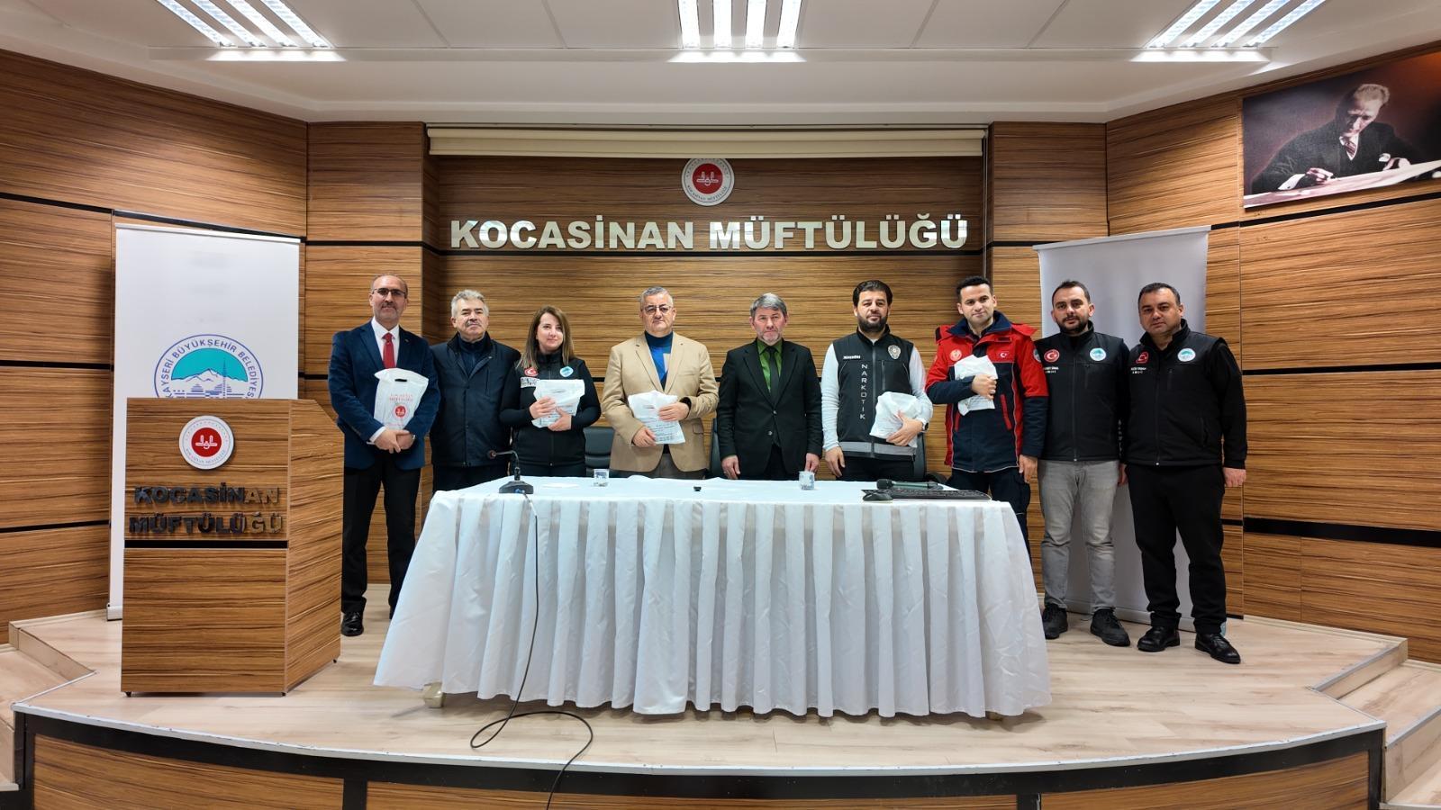 Kocasinan İlçe Müftülüğü Müftülük Sitesi Camii Gençlik Merkezi’nde düzenlenen eğitimlere Büyükşehir Belediyesi Genel Sekreteri Hüseyin Beyhan, Kocasinan İlçe Müftüsü Emin Patan, Afet İşleri ve Risk Yönetimi Daire Başkanı Gonca Arın, İtfaiye Daire Başkanı Mustafa Metin Kızılkan ile Kocasinan ilçesinde görev yapan din görevlileri katıldı.