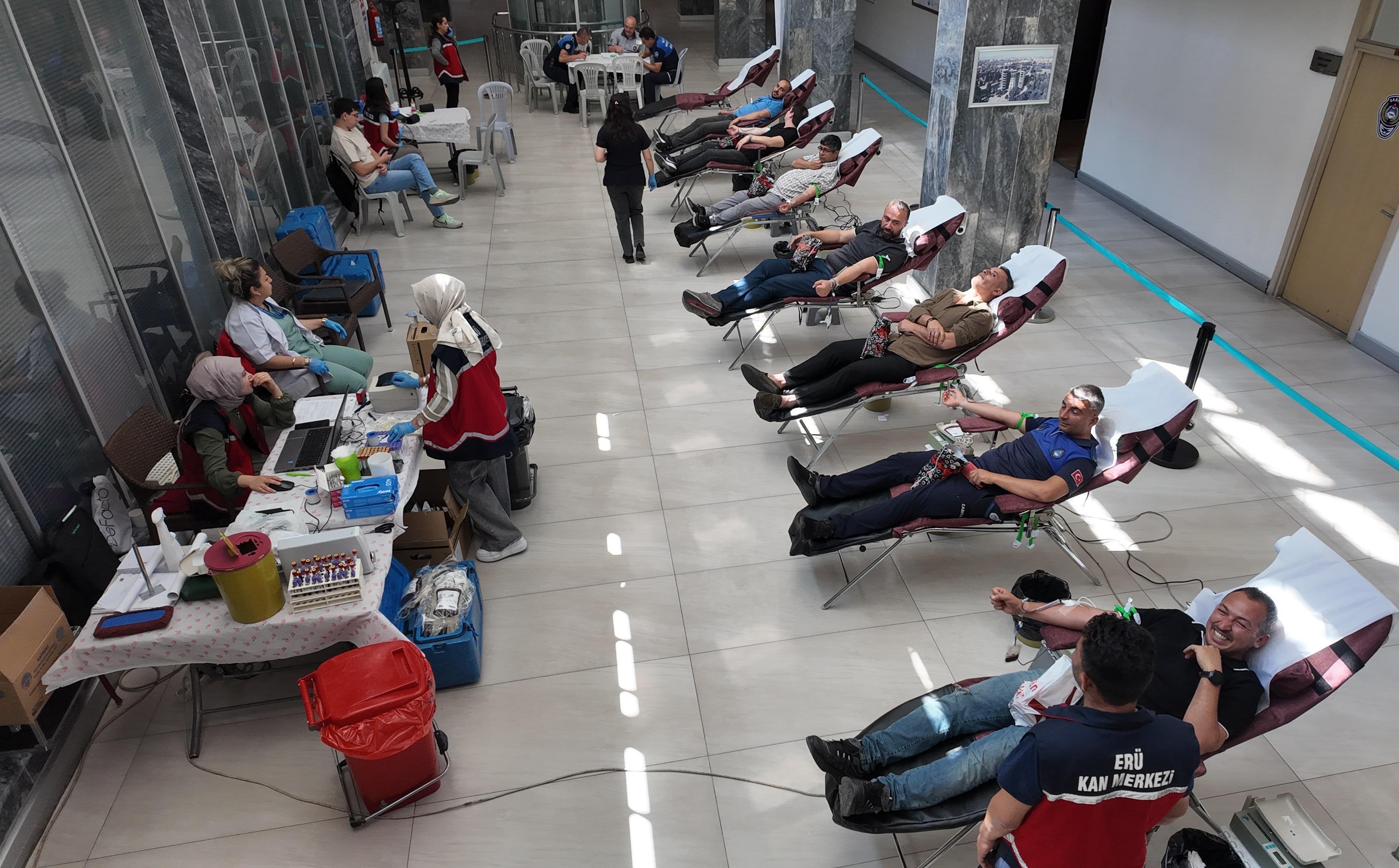 KAYSERİ, (DHA)- KAYSERİ Büyükşehir Belediyesi personeli, Erciyes Üniversitesi (ERÜ) Kan Merkezi iş birliğiyle, belediye hizmet binasında kurulan stantta gönüllü olarak kan bağışında bulundu.