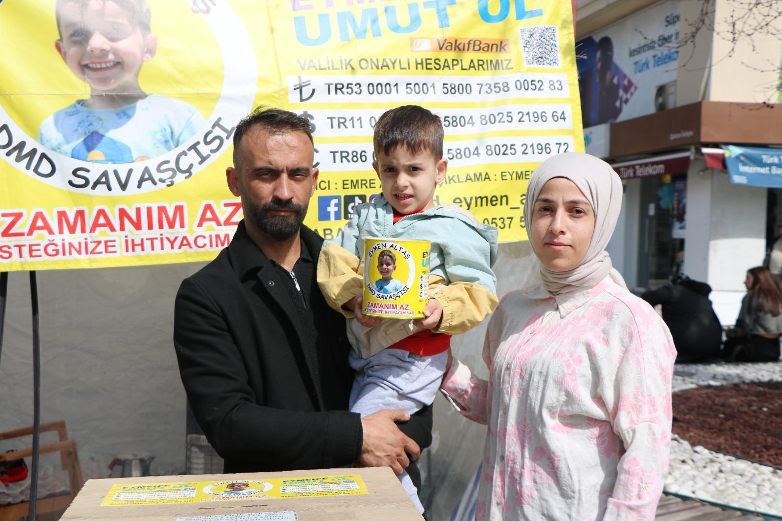 Kentte yaşayan Özlem-Emre Altaş (35) çiftinin tek çocuğu olan Eymen Altaş'ın, 9 aylıkken grip nedeniyle gittiği hastanede tahlillerinde kan değerleri yüksek çıktı. Testler sonucu Eymen'e henüz 2 yaşında DMD teşhisi konuldu. Türkiye'de tedavisi bulunmayan hastalık için aile, valilik onaylı kampanya başlattı. 9 ayda Eymen Altaş'ın tedavisi için gerekli olan 3 milyon doların yaklaşık 10 milyon lirası toplanabildi. Eymen'in kampanyasında şu ana kadar yüzde 8'lik miktara ulaşıldı.