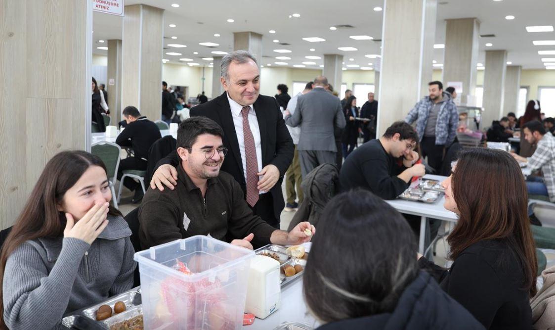 KAYSERİ, (DHA)- ERCİYES Üniversitesi (ERÜ) Rektörü Prof. Dr. Fatih Altun, öğrencilerle yemek yedi.