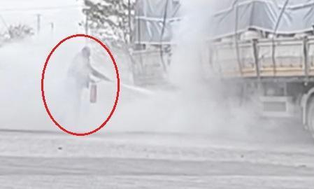 Olay, önceki gün Kayseri-Niğde yolundaki bir akaryakıt istasyonunda meydana geldi. Seyir halindeki patates yüklü TIR'ın dorsesindeki lastik patladı. Bunun üzerine TIR şoförü aracıyla akaryakıt istasyonuna girdiği sırada lastik alev aldı. Lastiğin yandığını gören istasyondaki pompacı Yasin Atasever, yangın tüpüyle alevlere müdahale etti. Atasever bir süre sonra yangını söndürdü. O anları ise bir vatandaş, cep telefonu kamerası ile kaydetti.