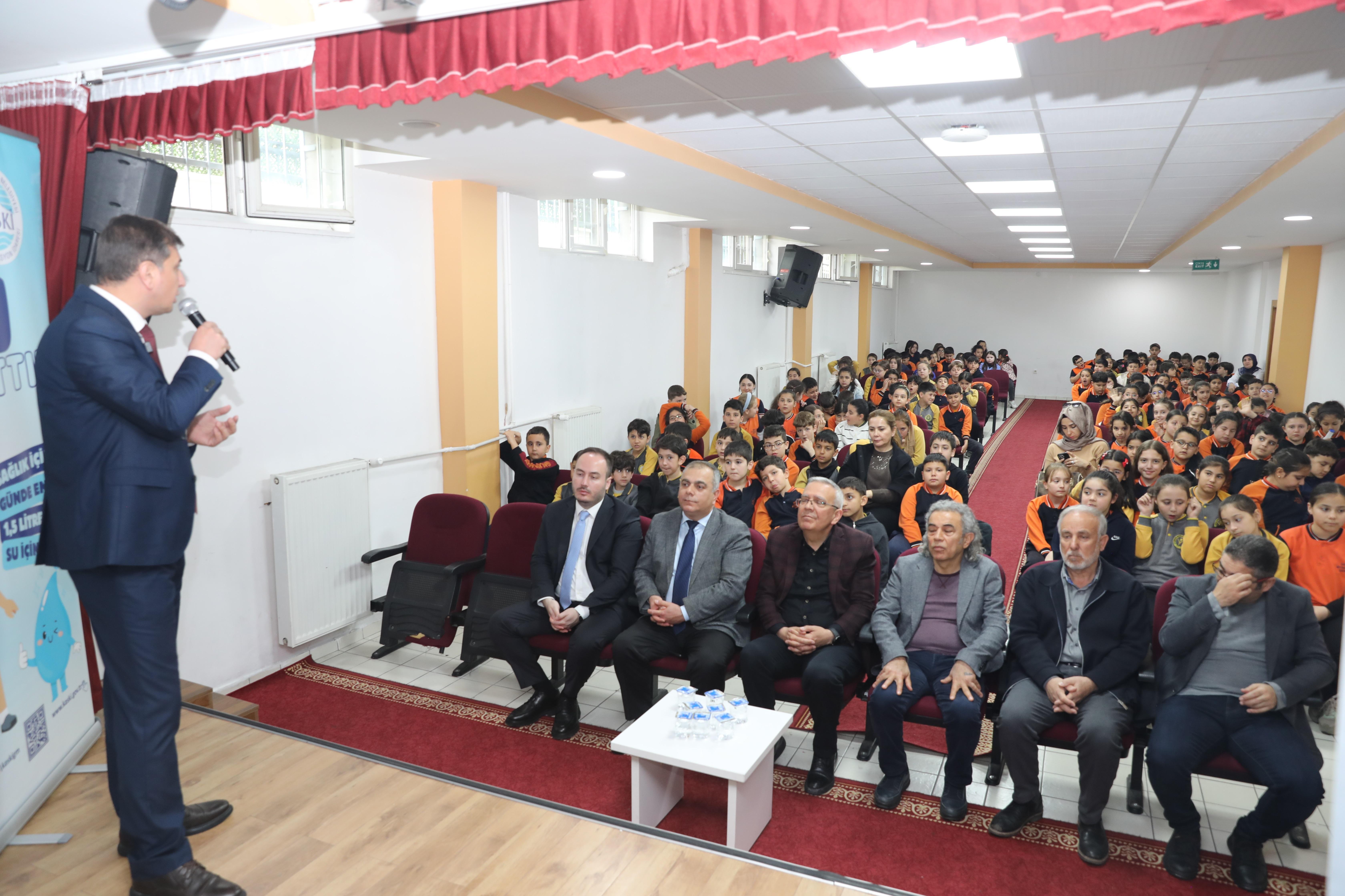 KAYSERİ, (DHA)- KAYSERİ Büyükşehir Belediyesi Su ve Kanalizasyon İdaresi (KASKİ) Genel Müdürlüğü, ‘Su Tasarrufu ve Suyun Serüveni’ projesi kapsamında Fatoş Büyükkuşoğlu İlkokulu öğrencilerine su tasarrufu ve su bilincini anlattı.