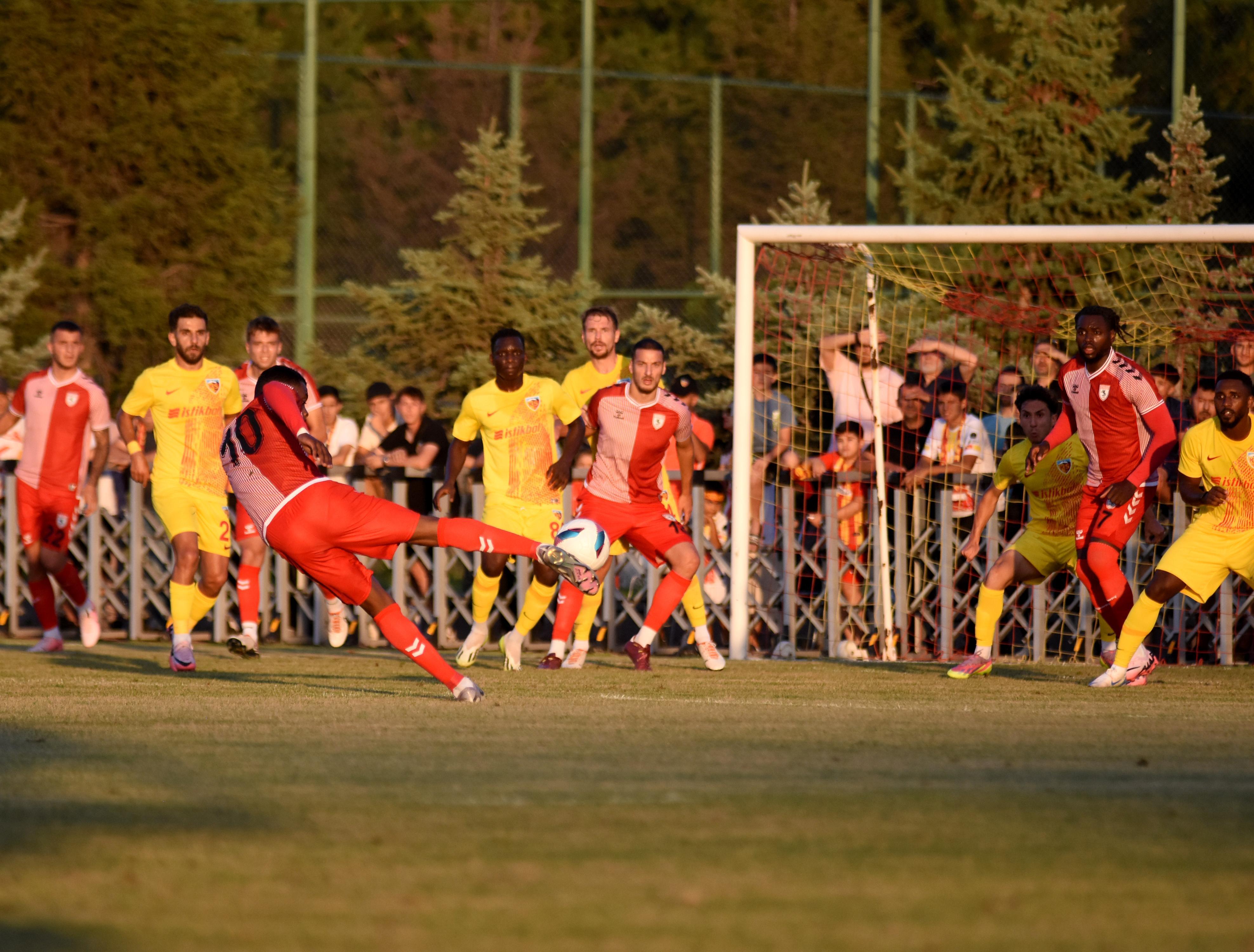 Yeni sezon hazırlıklarına kulüp tesislerinde devam eden Kayserispor, ilk hazırlık maçında Samsunspor ile karşı karşıya geldi. Kayserispor Tesisleri'nde oynanan karşılaşmaya sarı-kırmızılı takım Bilal, Gökhan, Jeanvier, Arif, Ramazan, Attamah, Mehmet Eray, Boa Morte, Mane, Cardoso, Bahoken 11’iyle çıktı. Samsunspor ise müsabakada Okan, Zeki, Bedirhan, Drongelen, Soner, Celil, Bennaser, Tait, Schindler, Emre Kılınç ve Mouandilmadji 11’iyle yer aldı. Samsunspor’un gollerini Mouandilmadji, Ntcham ve Ercan Kara attı. Kayserispor’un tek golünü Nazon kaydetti.