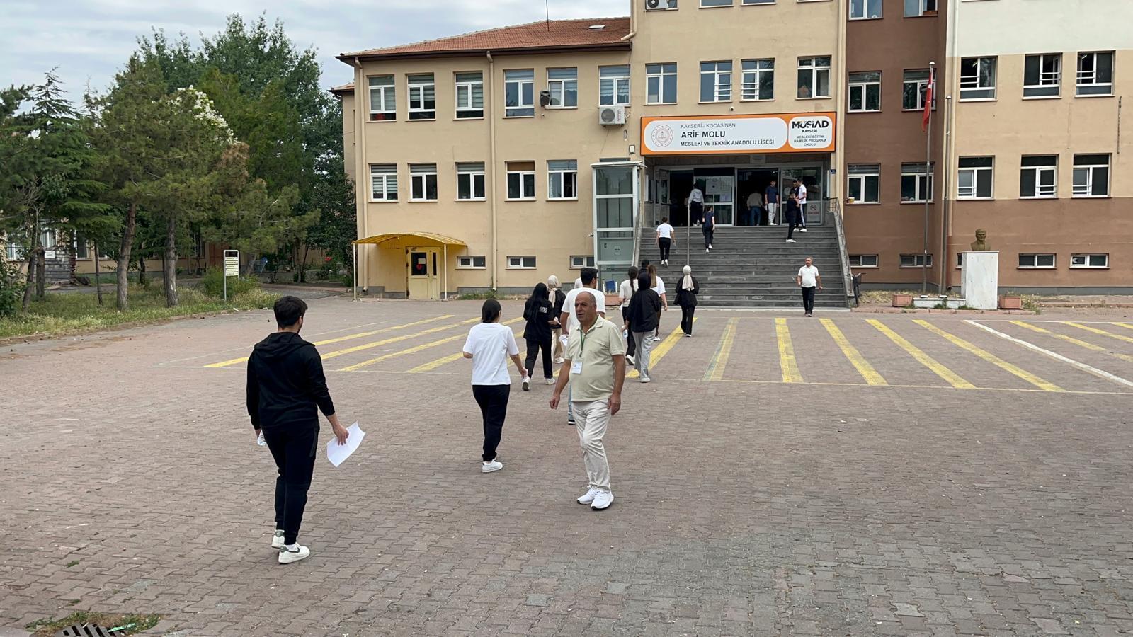 Ölçme, Seçme ve Yerleştirme Merkezi (ÖSYM) Başkanlığı tarafından düzenlenen, YKS'nin ikinci oturumu olan Alan Yeterlilik Testi (AYT) saat 10.15'te başladı. Kocasinan ilçesindeki Arif Molu Mesleki ve Teknik Anadolu Lisesi'nde AYT'ye sınava girecek adaylar, yakınlarıyla okula geldi. Görevliler tarafından belgeleri kontrol edilen öğrenciler, üst araması yapıldıktan sonra sınava girecekleri salonlara yönlendirildi. Kapının kapanmasına 2 dakika kala 1 öğrenci koşarak sınava girerken, cep telefonu ile sınava gelen adaylardan birisi cep telefonunun başka bir adayın velisine emanet etti. Saat 10.00 itibarıyla kapılar kapandı. Aileler de bahçede çocuklarını beklemeye başladı. Alan Yeterlilik Testi'nde adaylara 160 soru sorulacak ve 180 dakika süre verilecek. (DHA)
