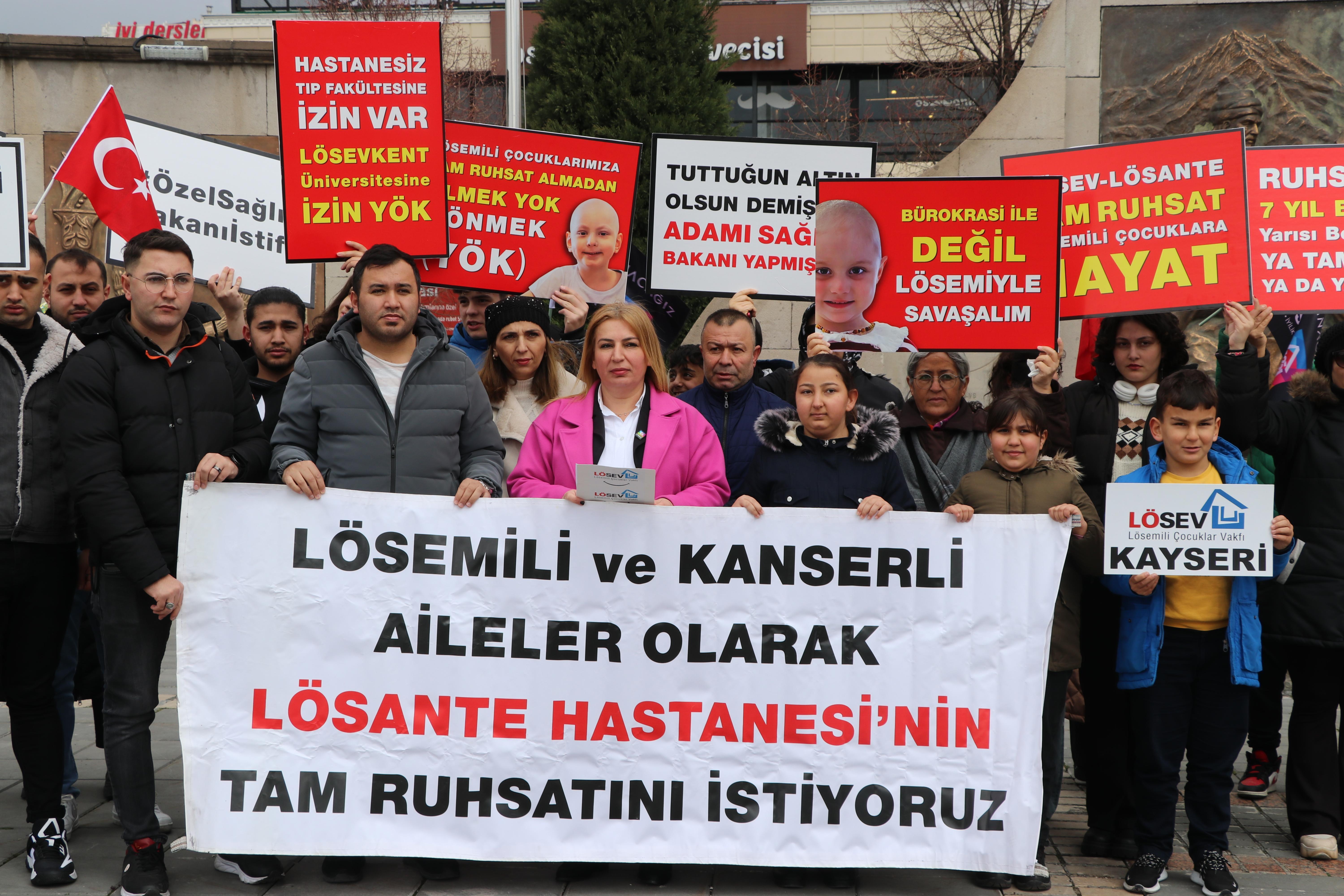 Furkan KAVUKLU-Yeliz BAYAZIT/KAYSERİ, (DHA)- LÖSEMİLİ Çocuklar Sağlık ve Eğitim Vakfı (LÖSEV) aileleri, Ankara'daki Lösante Çocuk ve Yetişkin Hastanesi'ne 'tam ruhsat verilmesi' talebiyle basın açıklaması yaptı.