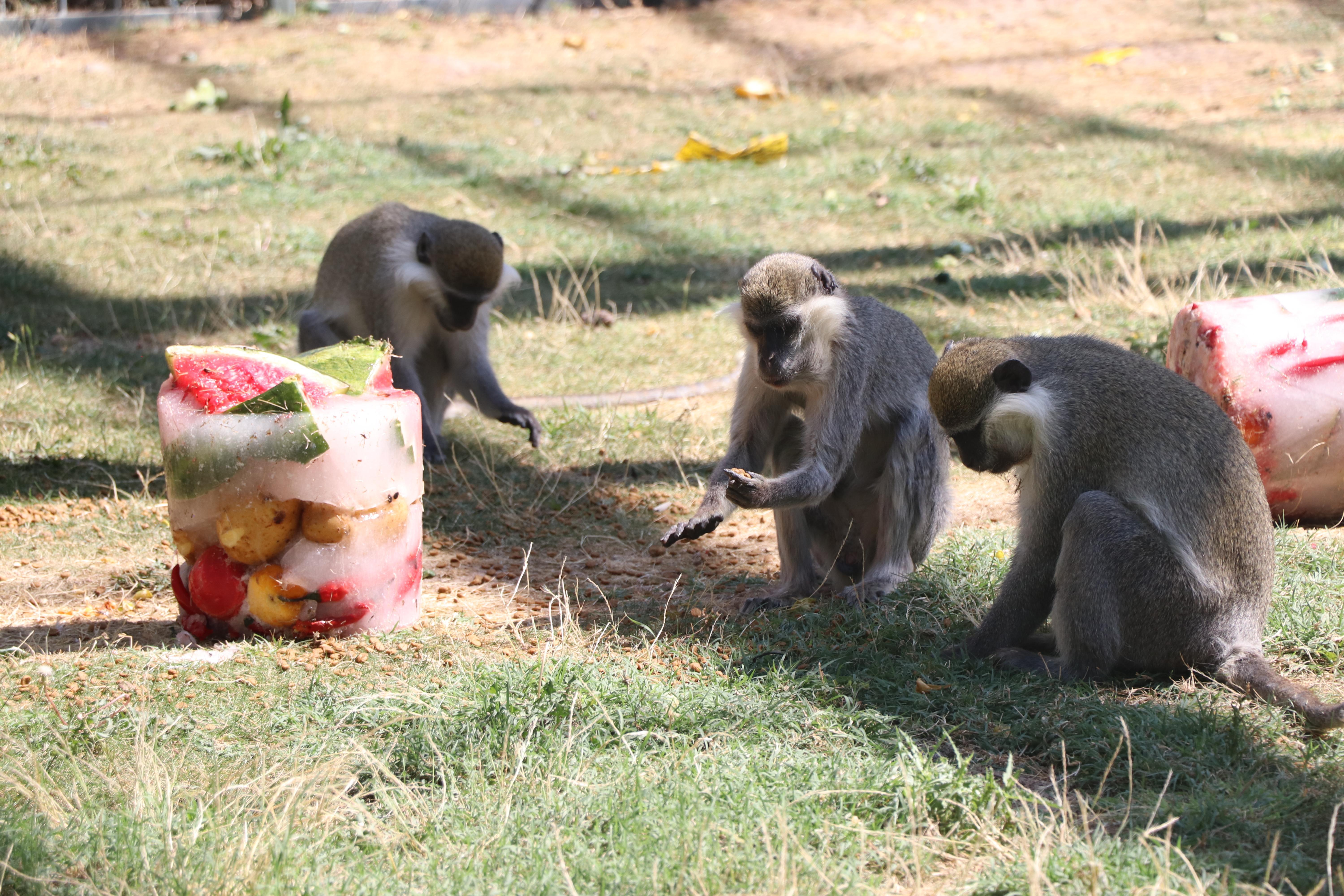 Sıcaktan bunalan maymunlara, meyve kokteylli serinlik