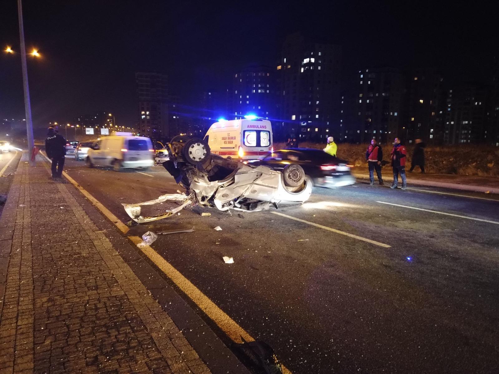 Takla atan otomobil, taksiyle çarpıştı; 3 yaralı