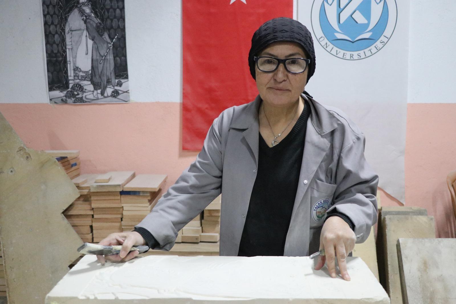 Talas ilçesi Zincidere Mahallesi'nde 119 yıl önce yapılan Sion Yetimhanesi'nin (Köy Muallim Mektebi) bahçesindeki atölyelerde taş, ahşap ve restorasyon ustası yetiştirilmesine yönelik kurs veriliyor. Talas Belediyesi ve Kayseri Üniversitesi (KAYÜ) iş birliğiyle 2 yıl önce hizmete açılan Talas Restorasyon Eğitim Merkezi'nin (TAREM) ustaları, 2025'te Kültür ve Turizm Bakanlığı tarafından verilen 'Somut Olmayan Kültürel Miras Taşıyıcıları' kartını almaya hak kazanırken, kursiyerler de kendi alanlarında usta öğretici oluyor. İlçede bir halk eğitim merkezinde hat sanatı hocası olarak görev yapan Bircan Ayata, tarihi yetimhanenin bahçesindeki atölyede yer alan taş işlemeciliği kursuna internetten gördüğü ilan sonrası katılmaya karar verdi.