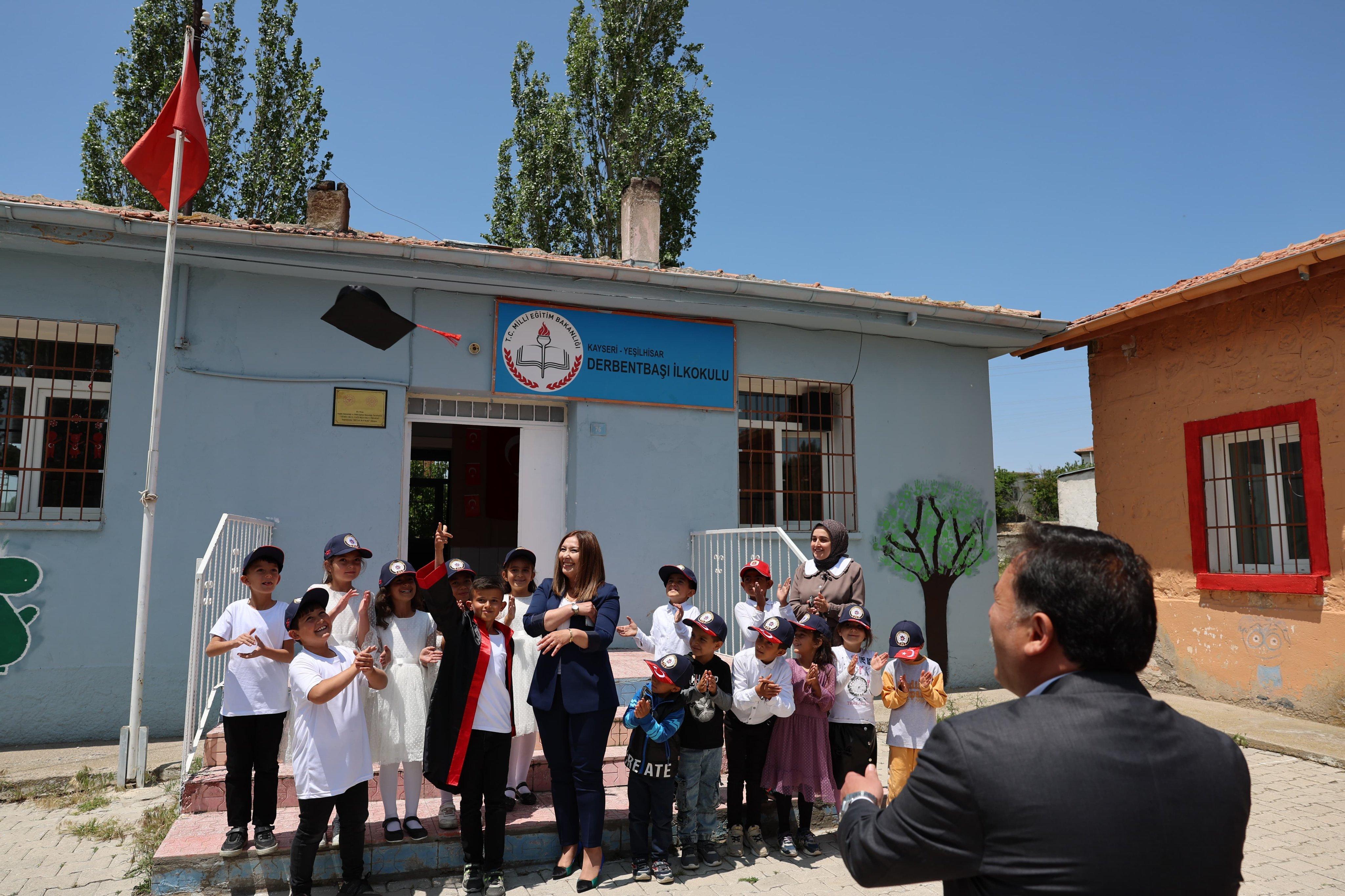 Metin DEĞİRMENCİ/KAYSERİ, (DHA)- KAYSERİ Valisi Gökmen Çiçek, 'Vali olmak istiyorum' diyerek davette bulunan 4'üncü sınıf öğrencisi ve okulun tek mezunu Bulut Şimşek'in, kep atma törenine katıldı.