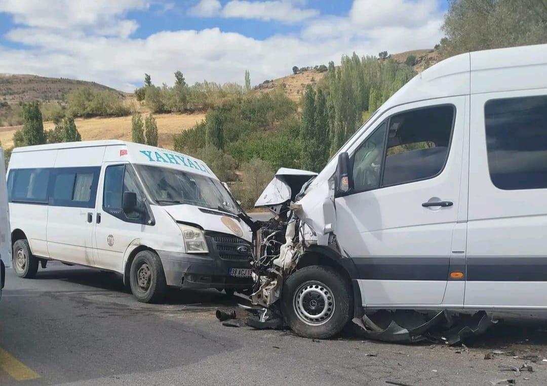 Hacı Baba LALE/YAHYALI, (Kayseri), (DHA)- KAYSERİ'nin Yahyalı ilçesinde, 2 minibüsün kafa kafaya çarpıştığı kazada 13 kişi yaralandı.