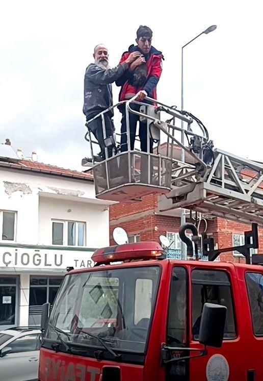 Camikebir Mahallesi Cumhuriyet Caddesi'nde bir müstakil evin çatısında kedi mahsur kaldı. Çevreden geçen İzzet Arlı isimli bir vatandaş kediyi kendi imkanları ile kurtaramayınca, itfaiyeden yardım istedi. İhbar sonrası adrese gelen ekipler, yaklaşık 15 dakika süren çalışma sonucu mahsur kalan kediyi bulunduğu yerden çıkarılıp, sahibine teslim etti. (DHA)