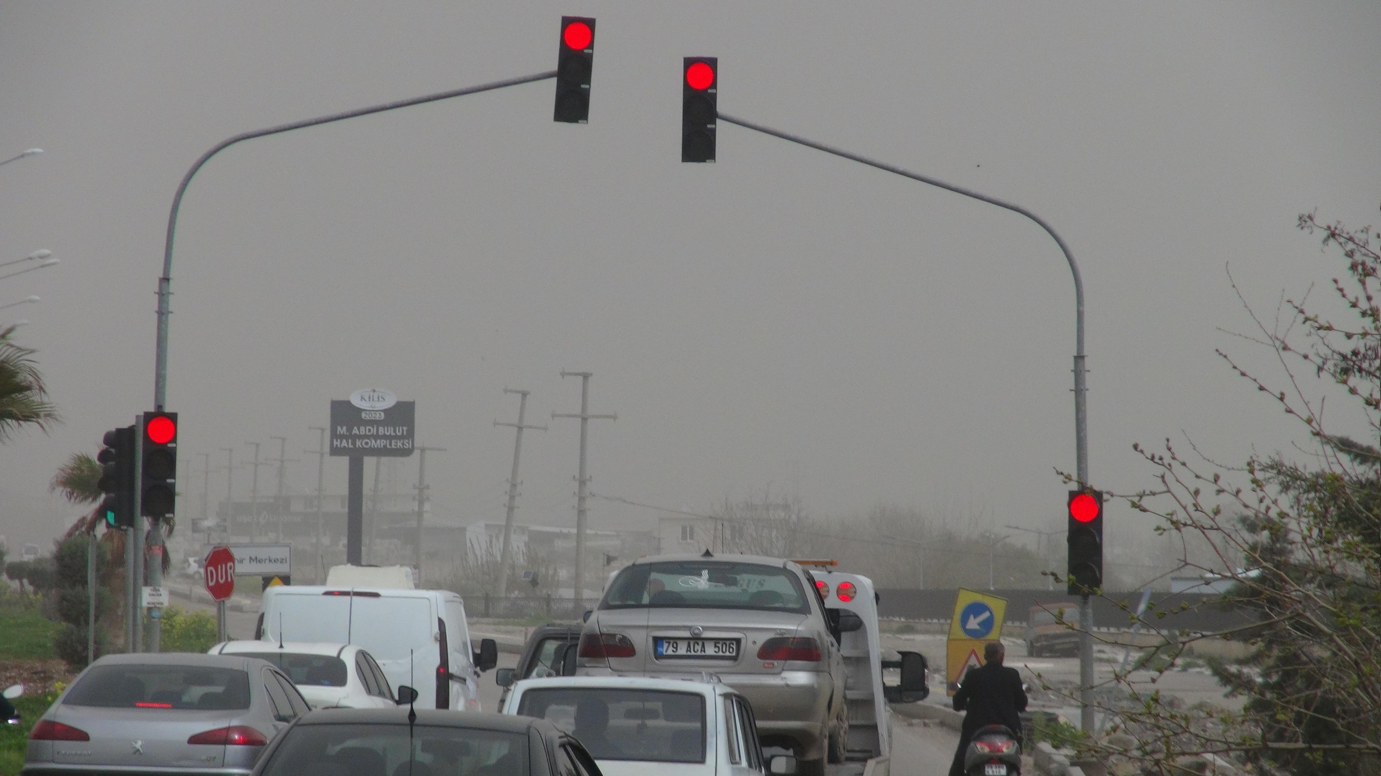 Kilis ve ilçelerinde dün etkili olan toz taşınımı bugün de devam etti. Suriye üzerinden gelen toz taşınımı nedeniyle araç sürücüleri zor anlar yaşadı. Vatandaşlar evlerinin kapı ve pencereleri gün boyu açmadı.