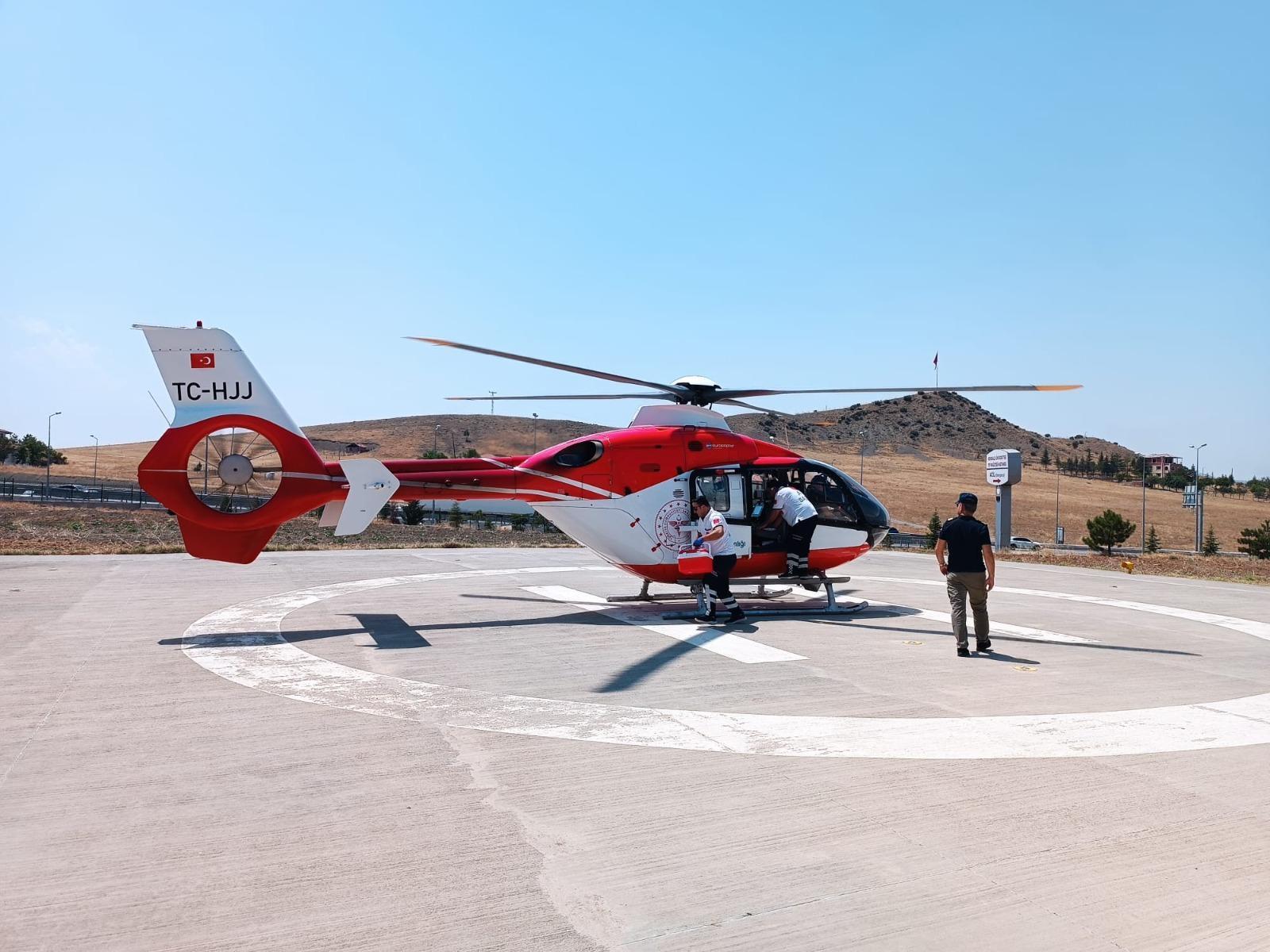Burak CAN/KIRIKKALE, (DHA)- KIRIKKALE'nin Karakeçili ilçesinde, elini kıyma makinesine kaptıran E.A.'nın (16) parmağı koptu. Ağır yaralanan çocuk, ambulans helikopter ile Ankara'ya sevk edildi.