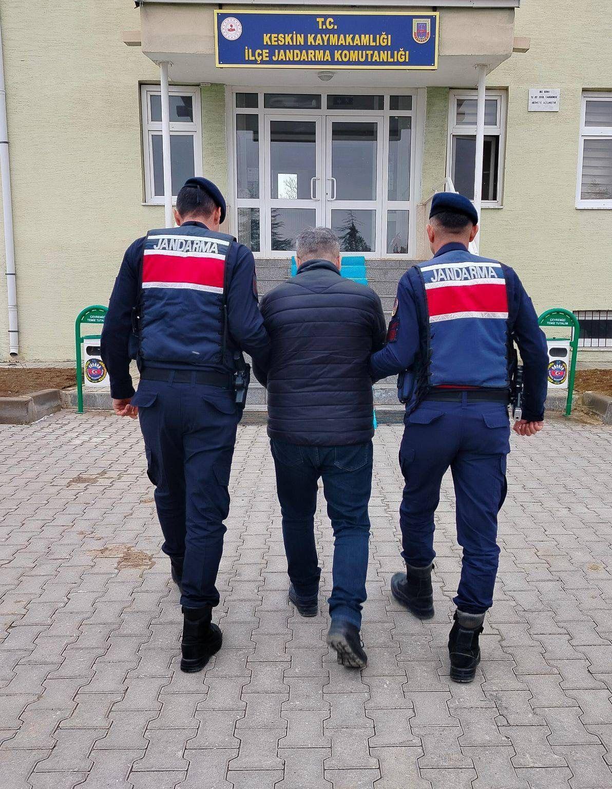 İl Jandarma Komutanlığı ekiplerince, aranan suçluların yakalanmasına yönelik çalışmada, 'Silahlı terör örgütü üyesi olmak' suçundan hakkında 6 yıl 3 ay kesinleşmiş hapis cezası bulunan eski adliye personeli R.B. Keskin ilçesinde yakalandı. Firari FETÖ üyesi, işlemlerinin ardından tutuklanarak cezaevine teslim edildi. (DHA)