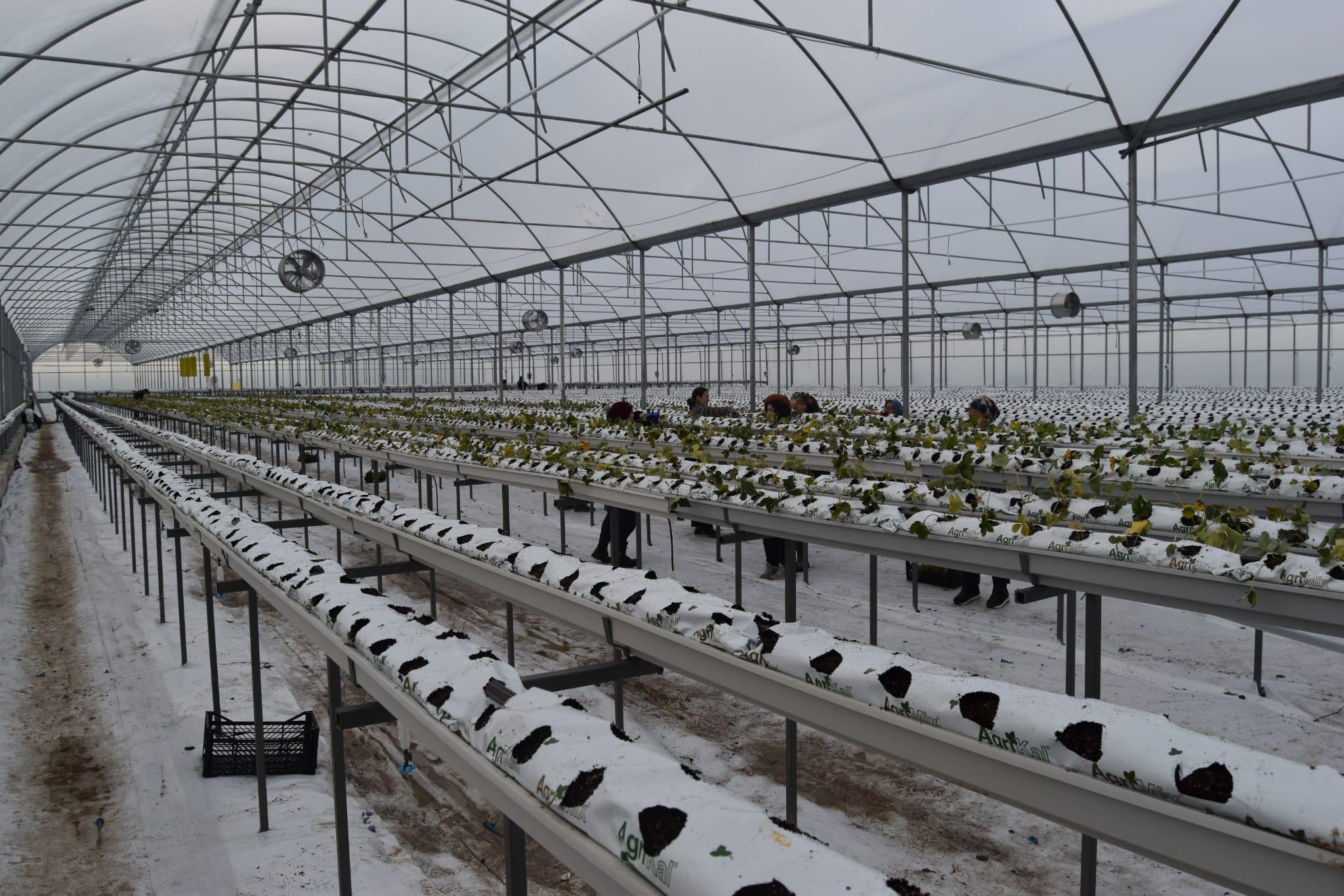 4 bin metrekarelik serada dört mevsim topraksız çilek üretiyor