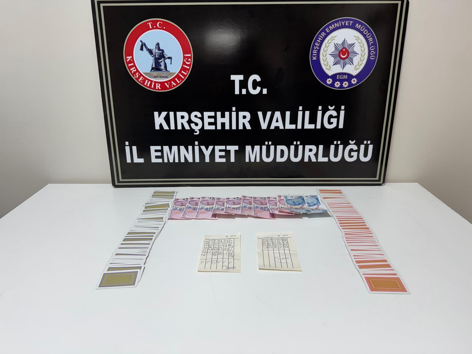 Fahrettin TOKER/KIRŞEHİR, (DHA) – KIRŞEHİR'de polisin düzenlediği operasyonda kumar oynadığı tespit edilen 4 kişi yakalandı. Şüphelilere toplam 36 bin 988 TL para cezası uygulandı.
