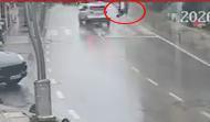 Yaya geçidinde otomobilin çarptığı kadın ağır yaralandı; kaza anı kamerada