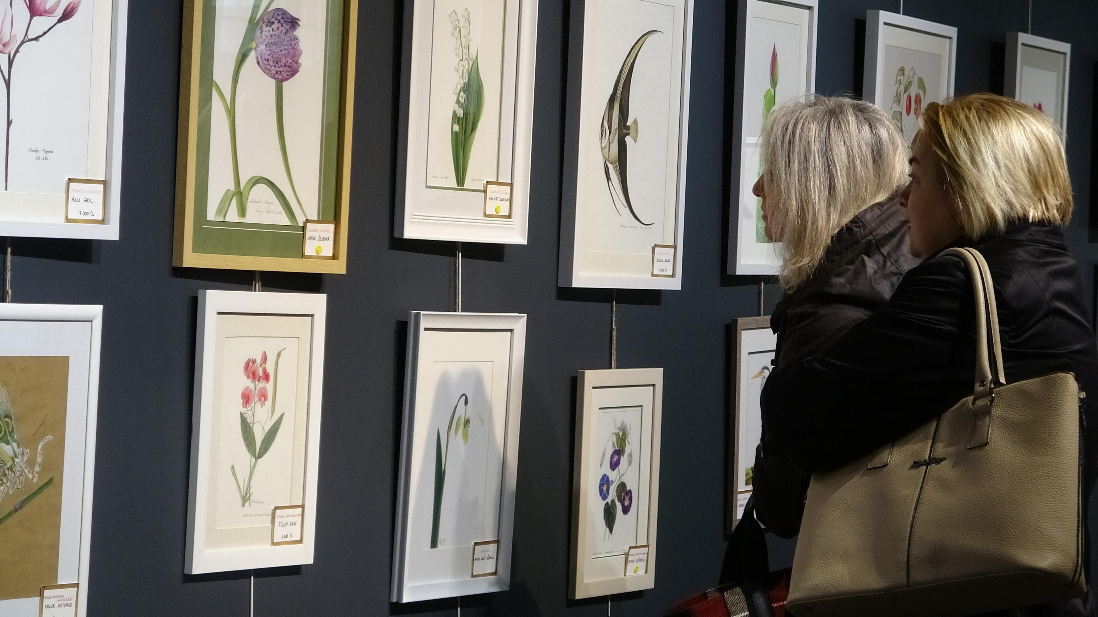 Ressam Aslı Akın ise matematik bölümü mezunu olduğunu belirterek, "Yıllarca öğretmenlik yaptım. Daha sonra işletmeciliğine de geçerek kendi etüt merkezimi açtım. Benim ailem komple öğretmen. Çocukluktan beri özellikle tezhip sanatına ilgim vardı ve artık doğanın da beni çağırdığını hissettiğim için bundan 17 sene önce her şeyi bırakıp, etüt merkezimi de devredip sanata yöneldim. Öncelikle geleneksel sanatlarla başlayıp Mafirat Hocam ile tanıştıktan sonra sanatın her alanının da ruha nasıl hitap ettiğini ayrı ayrı keşfetmeye başladım. Bilimsel bitki ressamlığı hiç aklımda olmayan bir şeydi çünkü minik tezhip ve minyatür ile uğraşmayı seviyordum ama renkleri tanıdıktan sonra, onlarla ruhumu dinlendirmeyi öğrendikten sonra bilimsel bitki sanatına yöneldim. Şimdiye kadar tezhip, minyatür ve bilimsel bitki toplamında 200’den fazla esere imza attım" diye konuştu.