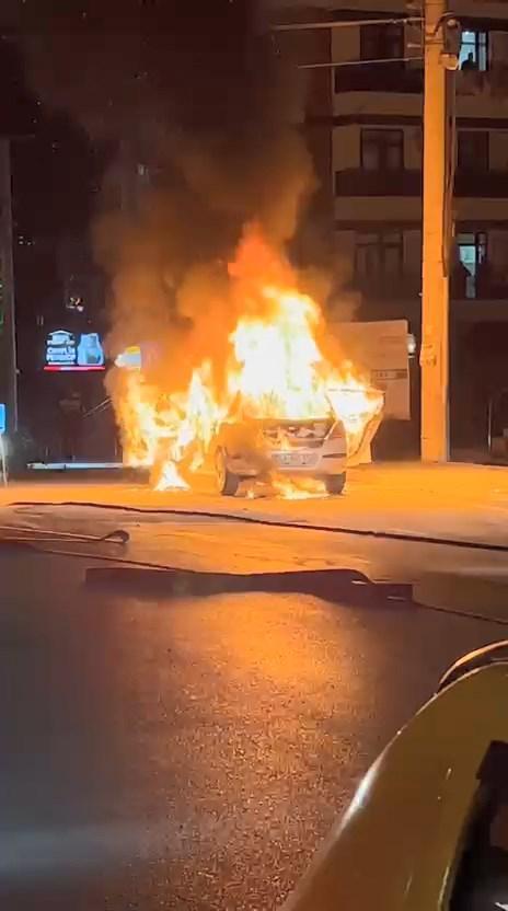 Kocaeli’de otomobil alev alev yandı