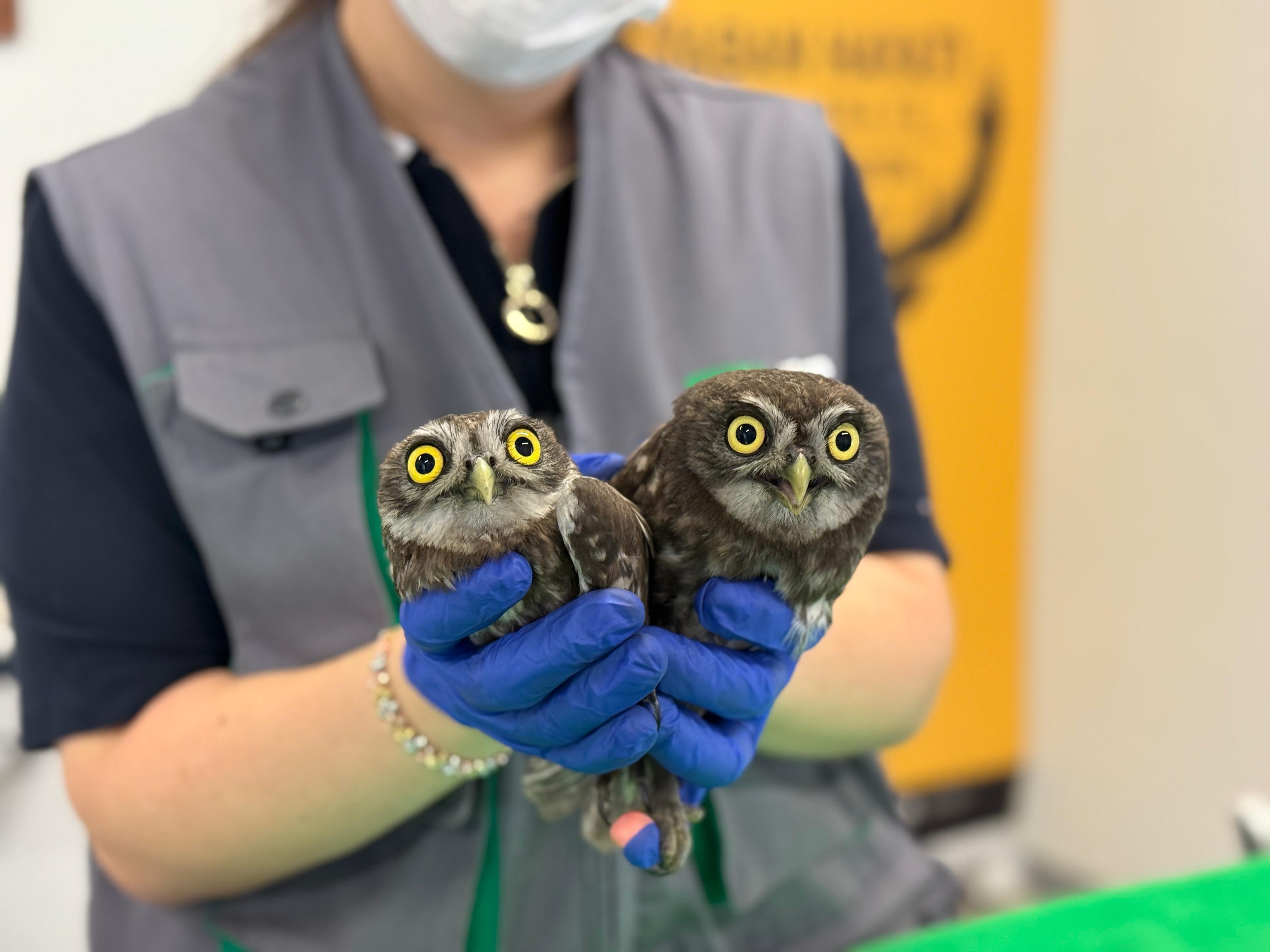 Evin bacasında mahsur kalan 2 baykuşu itfaiye kurtardı