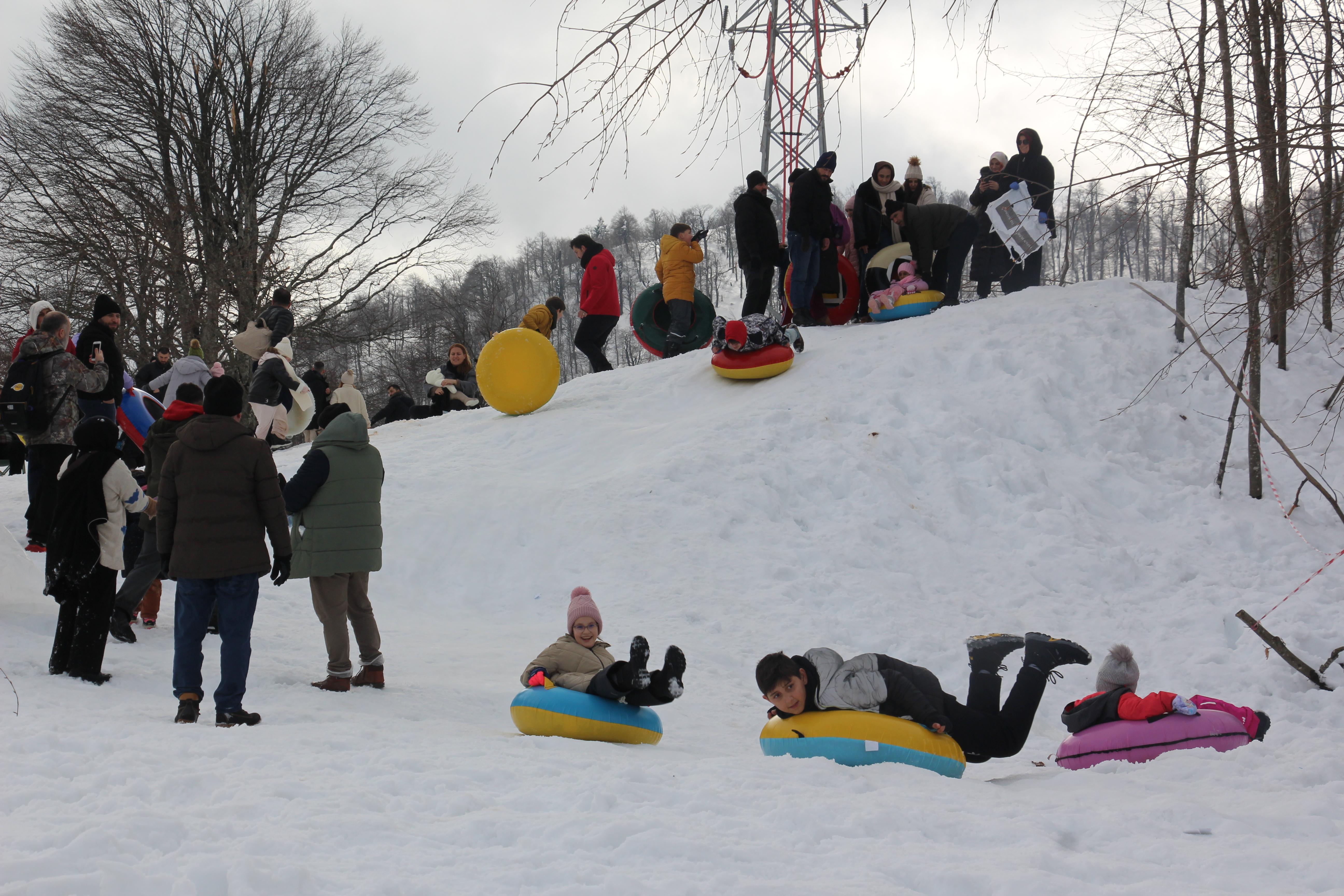 Ardacan UZUN/KARTEPE (Kocaeli), (DHA)- KARTEPE'nin eteğinde yer alan Kuzuyayla Tabiat Parkı'nda tatilci yoğunluğu yaşandı. Tatilciler, şişme botlar ve kızaklarla kayak yapıp, karın keyfini çıkardı.