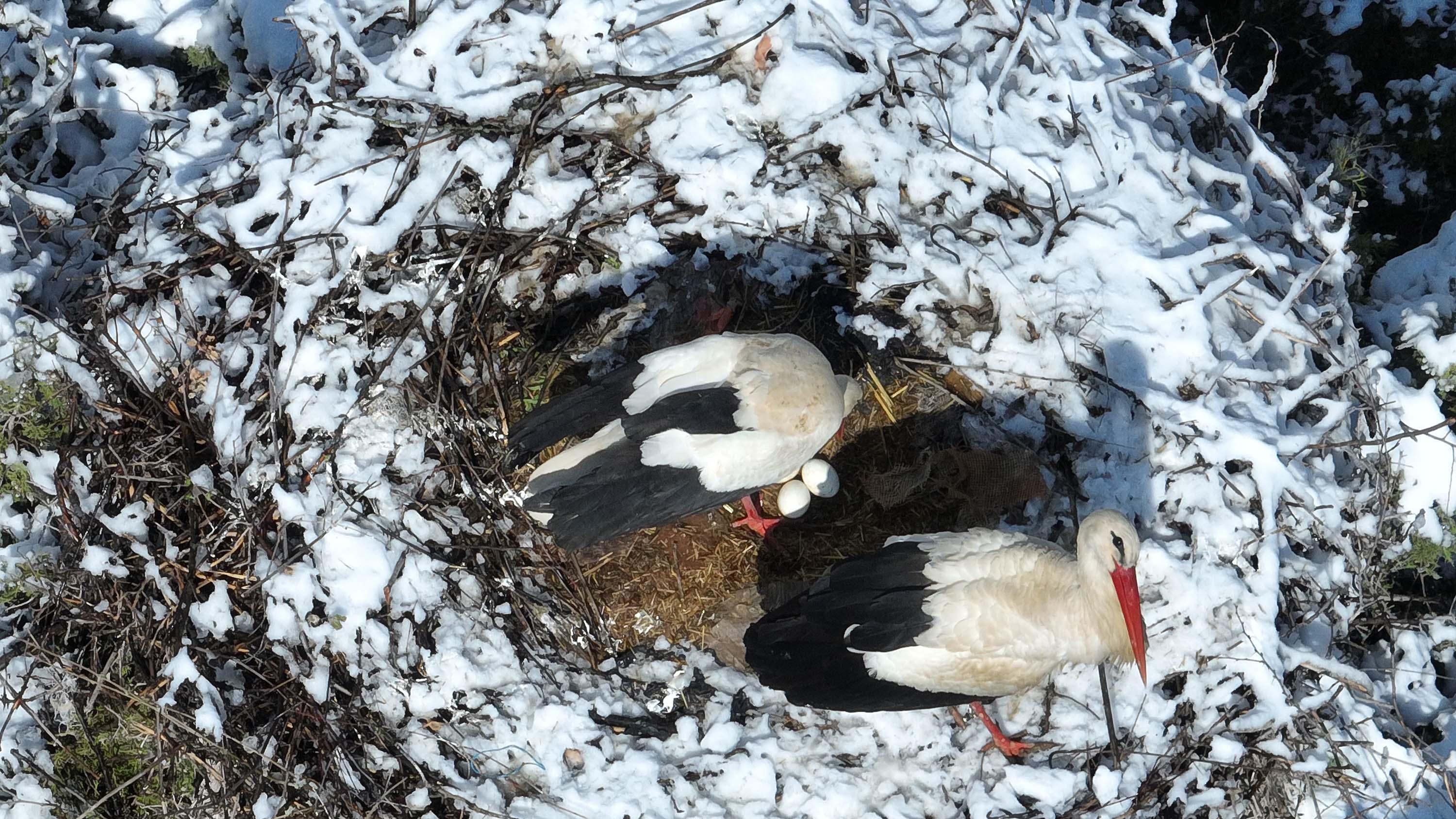 Leylekler Vadisi’ni kar kapladı, konuklarına yiyecek bırakıldı