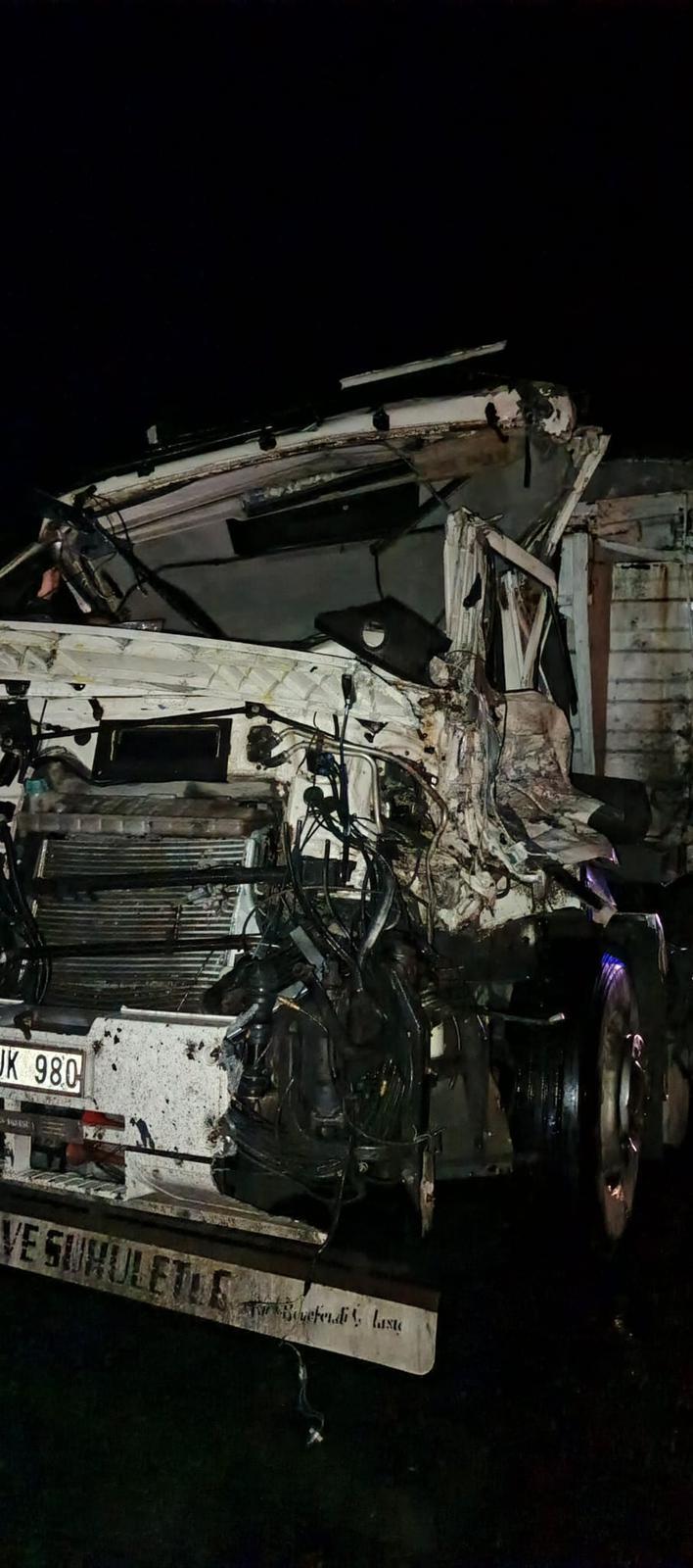 Kaza, dün saat 23.00 sıralarında Konya- Adana kara yolu Kesmez Mahallesi yakınlarında meydana geldi. İlhan Atakay yönetimindeki 63 K 6323 plakalı TIR, sürücüsünün kontrolünden çıkıp refüje aşıp karşı şeritten gelen Orbay Koçaker'in kullandığı 42 JK 980 plakalı TIR'a çarptı. Kazada sürücüler Atakay ve Koçaker ile Koçaker'in yanındaki 1 kişi yaralandı. İhbar üzerine kaza yerine polis, jandarma, itfaiye ve sağlık ekibi sevk edildi. Yaralı 3 kişi ambulanslarla Karapınar Devlet Hastanesine kaldırıldı. Kaza ile ilgili inceleme sürüyor. (DHA)FOTOĞRAFLI
