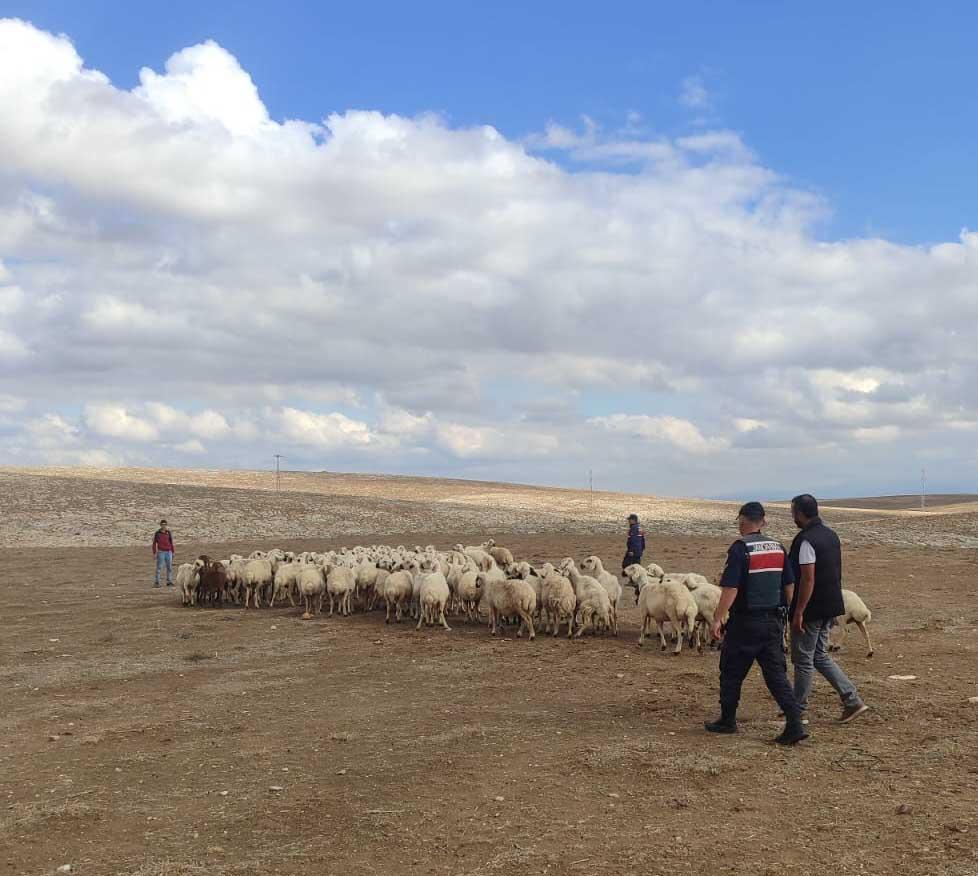 Çiftçi Fatih Soy, Avdan Mahallesi'nde koyunlarını otlattığı sırada yağmur yağmaya başladı. Etkili olan yağış nedeniyle koyunlardan 93'ü sürüden ayrılıp gözden kayboldu. Fatih Soy, kendi imkanlarıyla koyunlarını bulamayınca jandarma ekiplerine haber verdi. Jandarma, dron ile havadan yaptığı arama çalışmalarında koyunları yaklaşık 20 kilometre ilerideki Orhaniye Mahallesi'nde buldu. Bulunan koyunlar, sahibine teslim edildi. (DHA)FOTOĞRAFLI