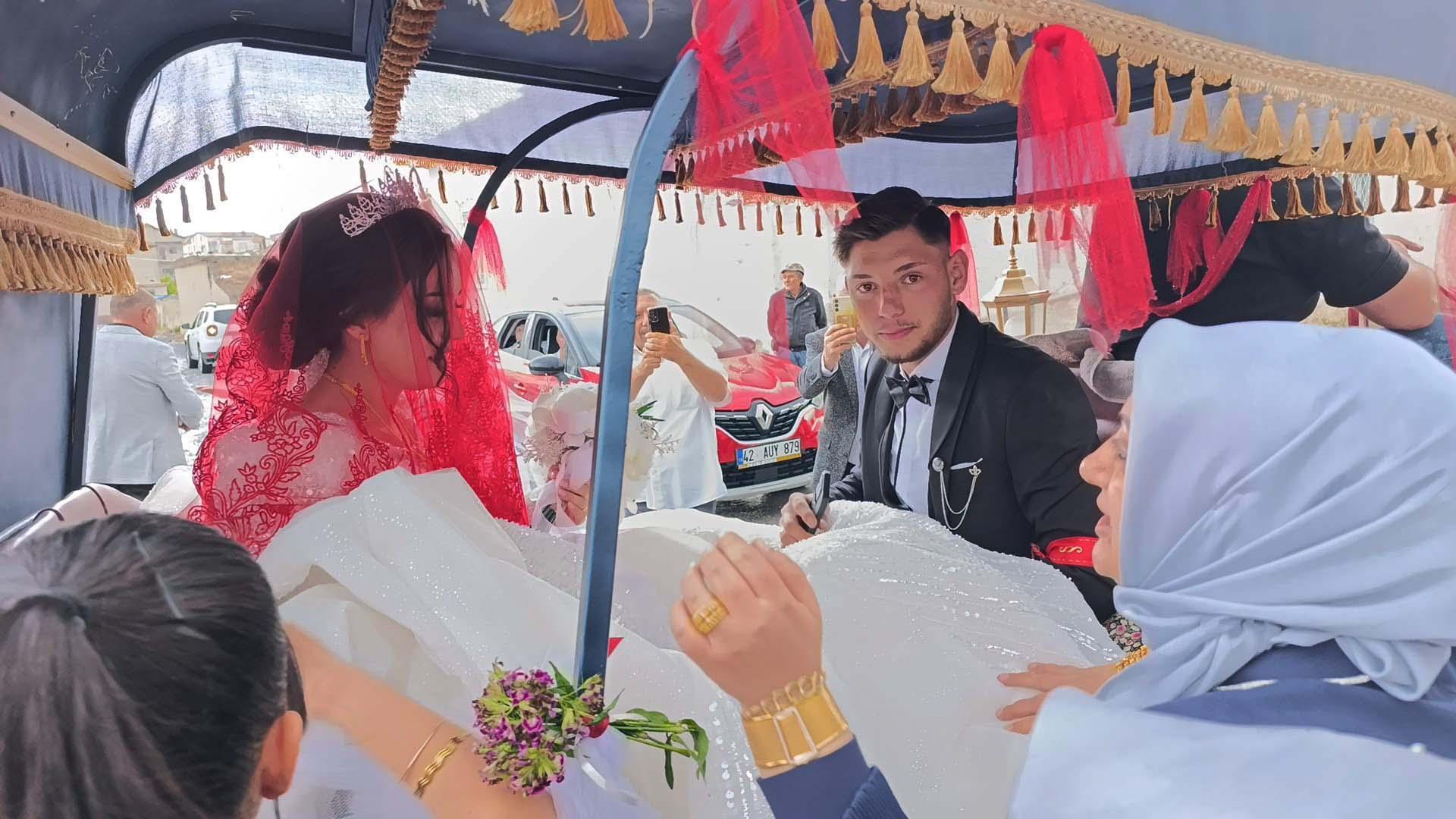 Mehmet OKUYUCU/KARAPINAR,(Konya)(DHA)- KONYA'nın Karapınar ilçesinde dünya evine giren Kübra Nur ve Yunus Karakaya çifti, gelin arabası olarak payton kullandı.