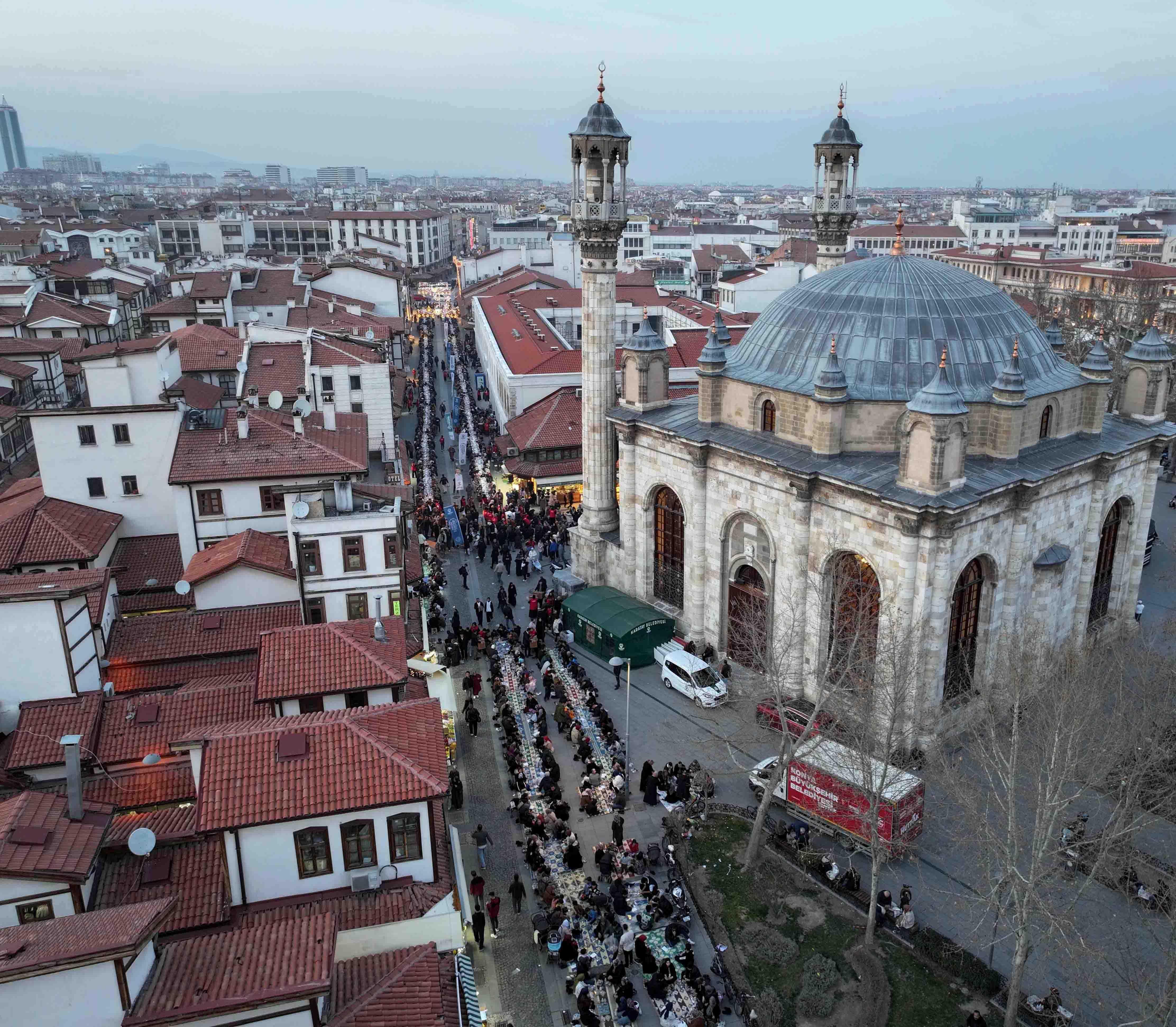 Karatay Belediyesi tarafından organize edilen programda binlerce kişi, Aziziye Camii önü ve çevresinde bir araya geldi. Sokak ortalarına kurulan masalarda 7'den 70'e her yaştan kişinin katıldığı iftar yemeği sonrası, çocuklar içinde Hacivat-Karagöz ve Nasreddin Hoca gibi geleneksel karakterlerin gösterisi yapıldı. İftara katılanlarla selamlaşan Karatay Belediye Başkanı Hasan Kılca, iftar programlarında aşın ve muhabbetin paylaşıldığını, ramazan ayının heyecan ve coşkusunu tüm Karataylılarla birlikte yaşadıklarını kaydetti. İftar programının ardından Yediler Mahallesi’ne geçen Karatay Belediye Başkanı Hasan Kılca, Hacı Mustafa Faydasıçok Camii’nde kılınan teravih ve Kadir Gecesi namazı sonrası mahalle sakinleriyle bir araya geldi.Teravih namazının ardından vatandaşlarla sohbet eden Kılca mahalle sakinlerinin talep ve görüşlerini dinledi. (DHA)FOTOĞRAFLI