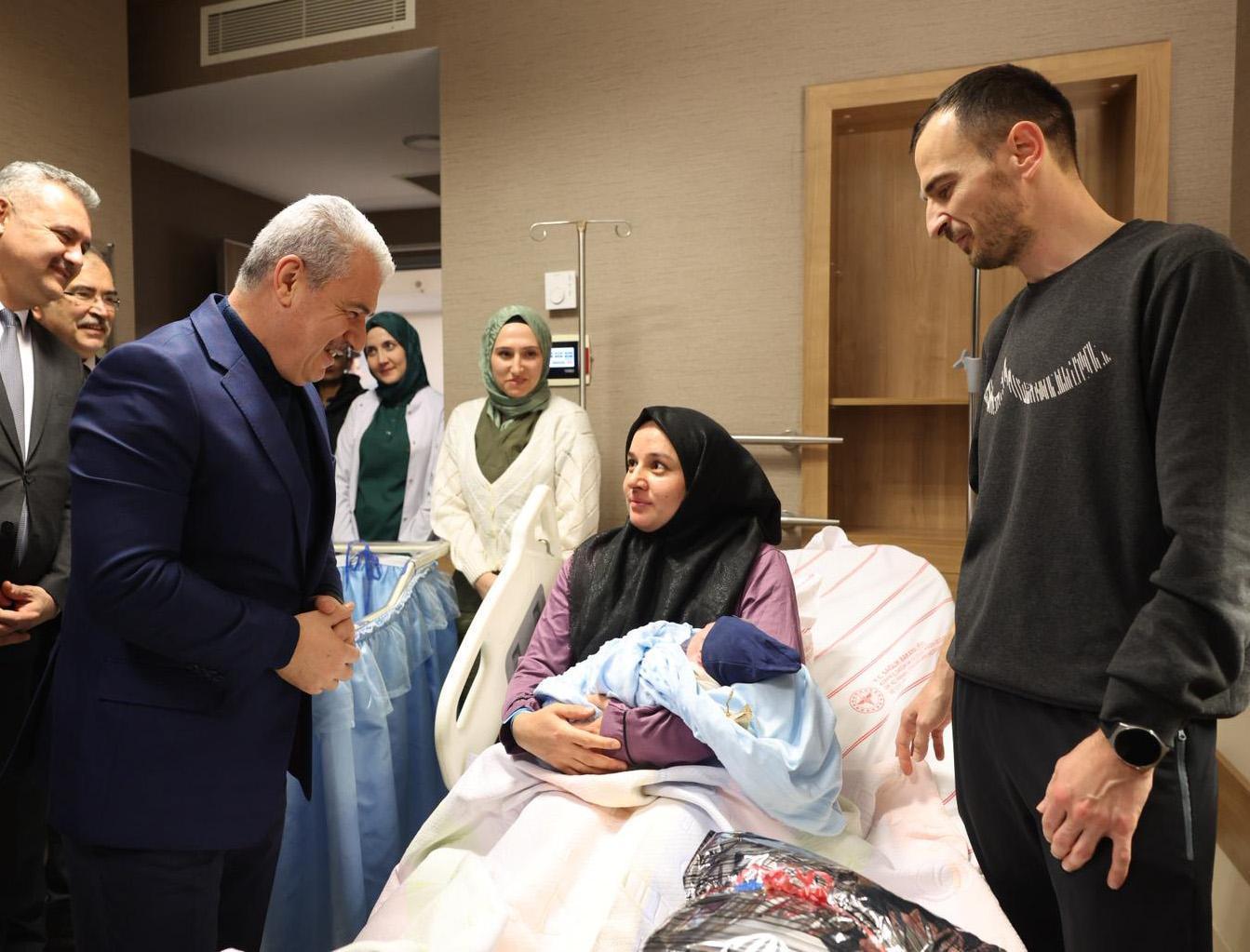 Konya’da Cemile (33) ve Hasan Özkara çiftinin bebekleri saat 00.02'de Dr. Ali Kemal Belviranlı Kadın Doğum ve Çocuk Hastanesi'nde normal doğumla dünyaya geldi. Ailenin ‘Alparslan’ adını verdiği bebek 3 kilo 100 gram ağırlığında doğdu. Bebeğin ilk ziyaretçisi, Konya Valisi İbrahim Akın anneyi Cemile ve baba Hasan Özkara’yı kutladı. (DHA) FOTOĞRAFLI