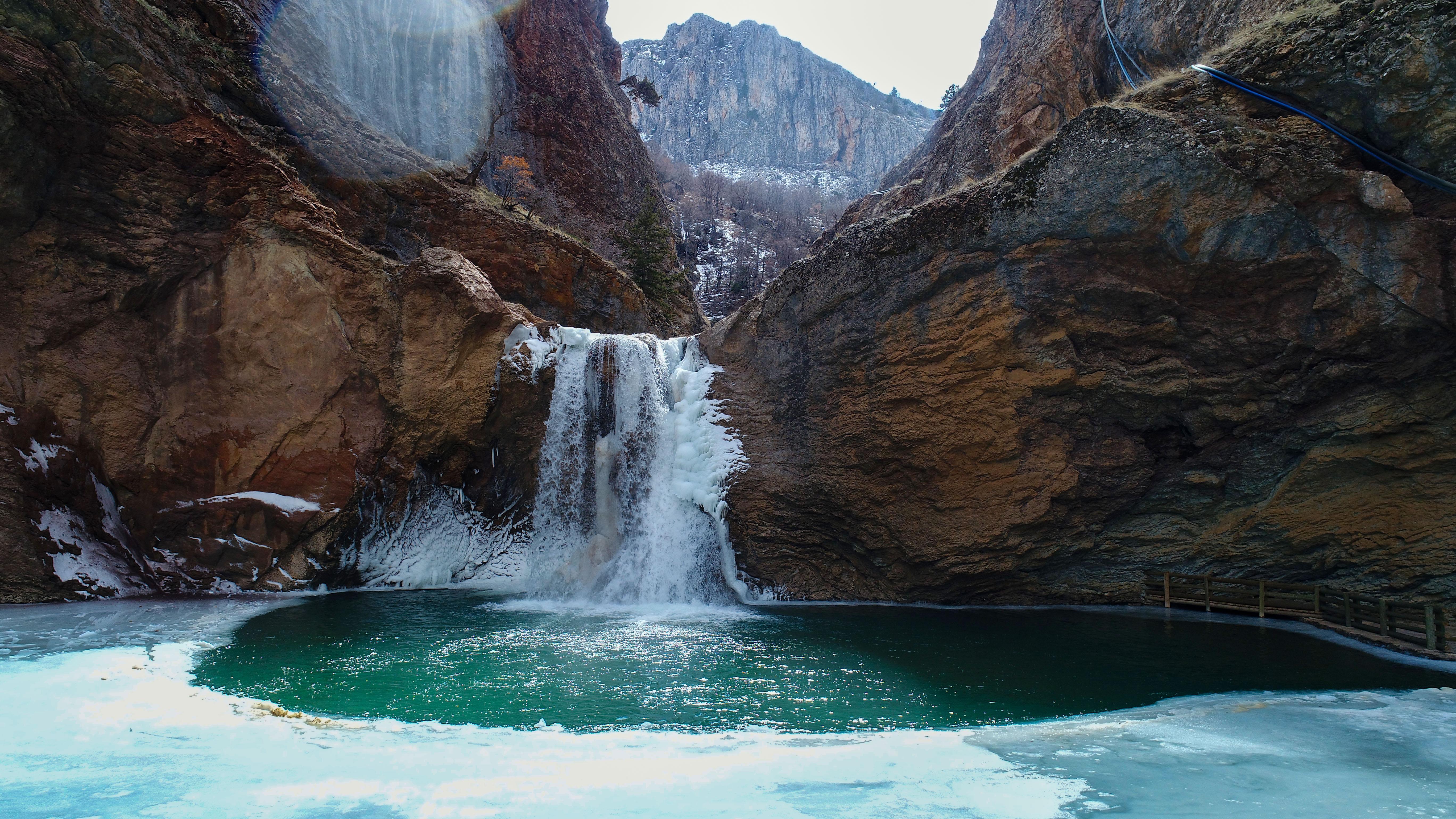 Konya'da Çetmi Şelalesi buz tuttu