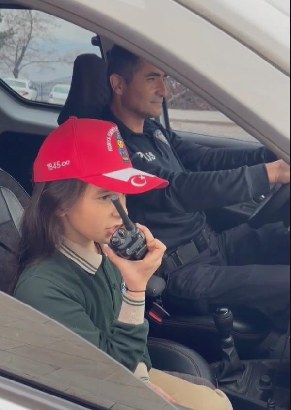 KONYA, (DHA)- KONYA’nın Taşkent ilçesinde hayali polis olmak olan 5 ilkokul öğrencisi, Türk Polis Teşkilatı’nın kuruluşunun 180’inci yılı dolayısıyla Taşkent ilçe Emniyet Amirliği’ni ziyaret etti. Telsizden anons yapan çocuklar, 1 günlüğüne polislik yaptı.