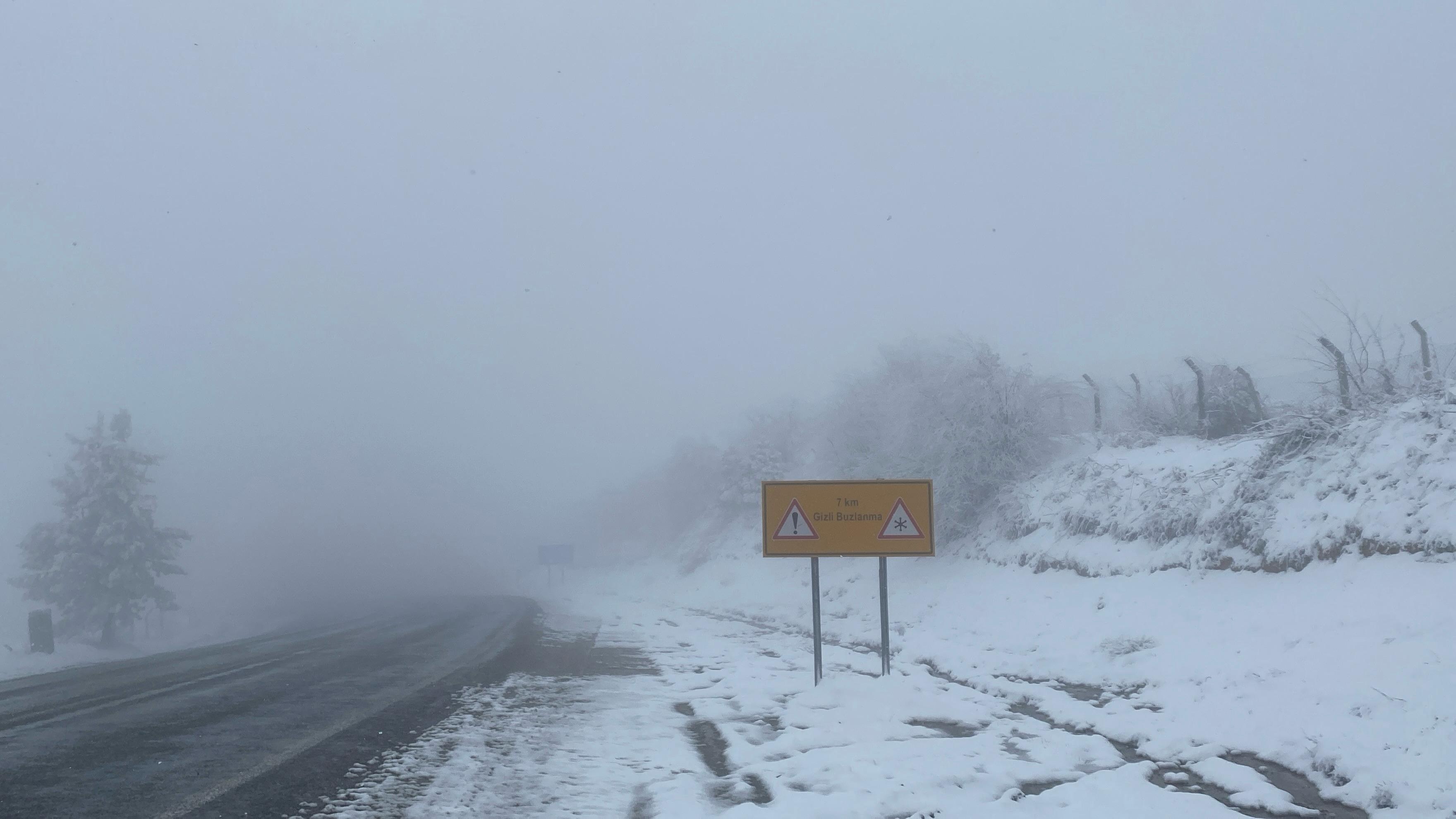 Mustafa YİĞİT/ DOMANİÇ (Kütahya), (DHA)- KÜTAHYA'nın Domaniç ilçesi ile Bursa'nın İnegöl ilçesini birbirine bağlayan kara yolunda, kar yağışı ve sis etkili oldu.