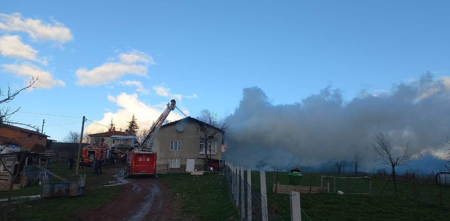 Evin çatısında çıkan yangını itfaiye söndürdü