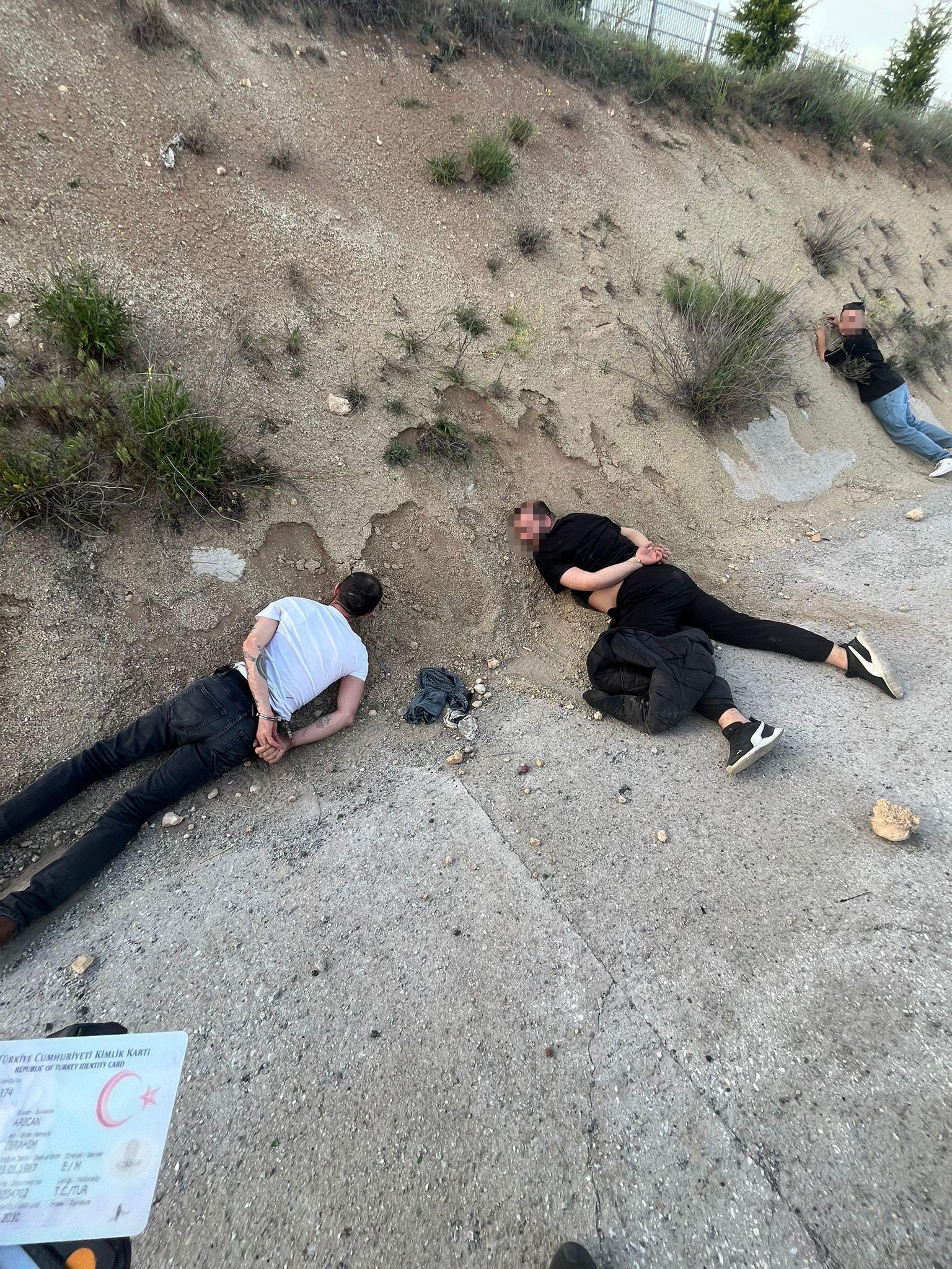 Kütahya- Eskişehir karayolundaki uygulama noktasında polis ekipleri, durumundan şüphelendikleri 26 T 0128 plakalı hafif ticari aracı durdurmak istedi. Polisin ikazlarına uymayarak kaçmaya başlayan sürücü, yaklaşık 40 kilometre süren takibin ardından Aslanapa ilçesi Pazarcık yol ayrımında durduruldu. Sürücü E.E. (23) ile birlikte araçta bulunan Ç.Ç. ve İ.A. gözaltına alındı. Şüphelilerden Ç.Ç.’nin ‘kasten öldürme’ suçundan 19 yıl 8 ay 20 gün kesinleşmiş hapis cezası bulunduğu ve cezaevi firarisi olarak arandığı, 34 ayrı suçtan kaydı olan İ.A.’nın ise kasten yaralama suçundan arandığı belirlendi.