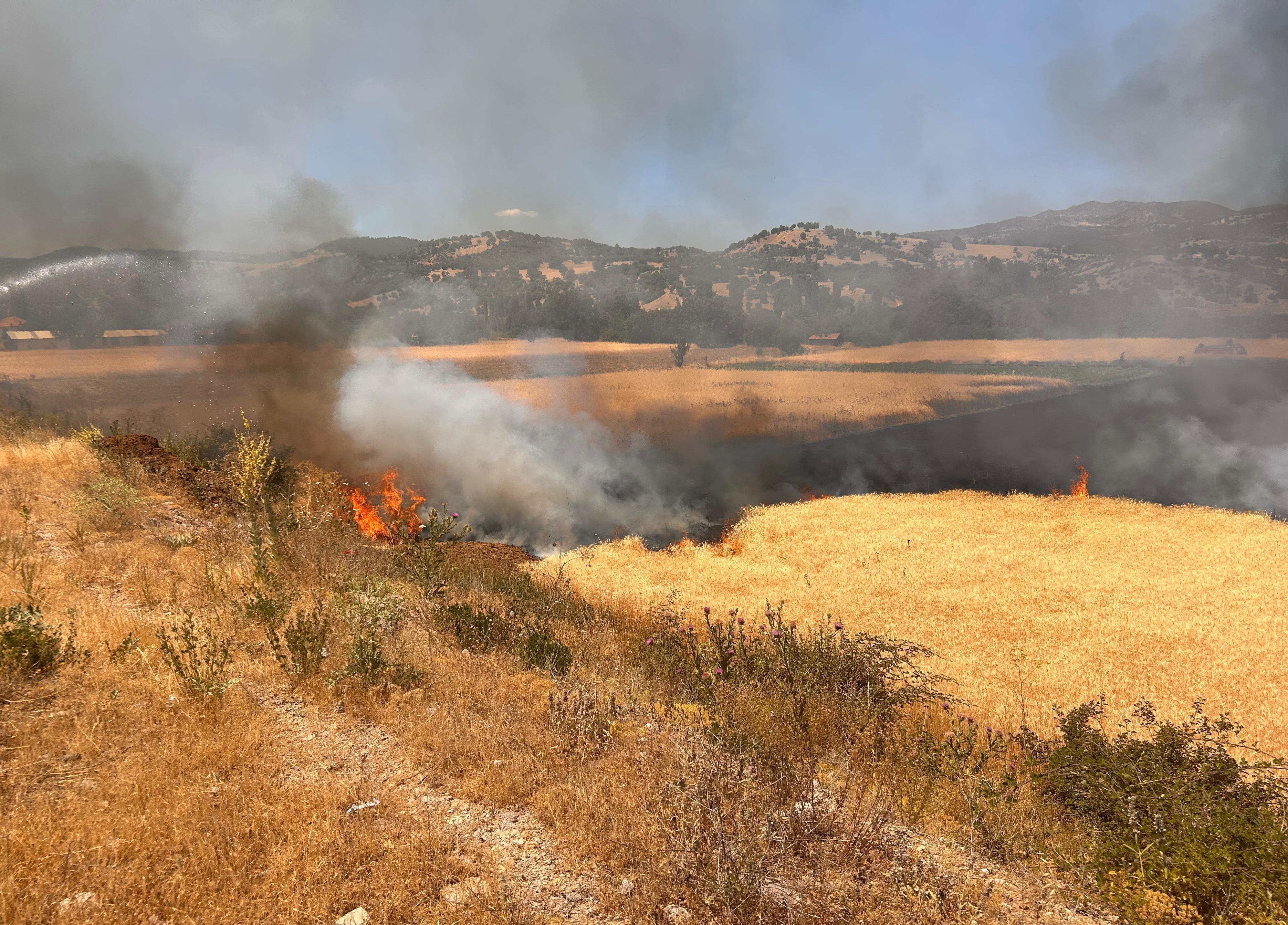 Biçerdöver kaynaklı yangında 2,5 dekar ekili buğday yandı