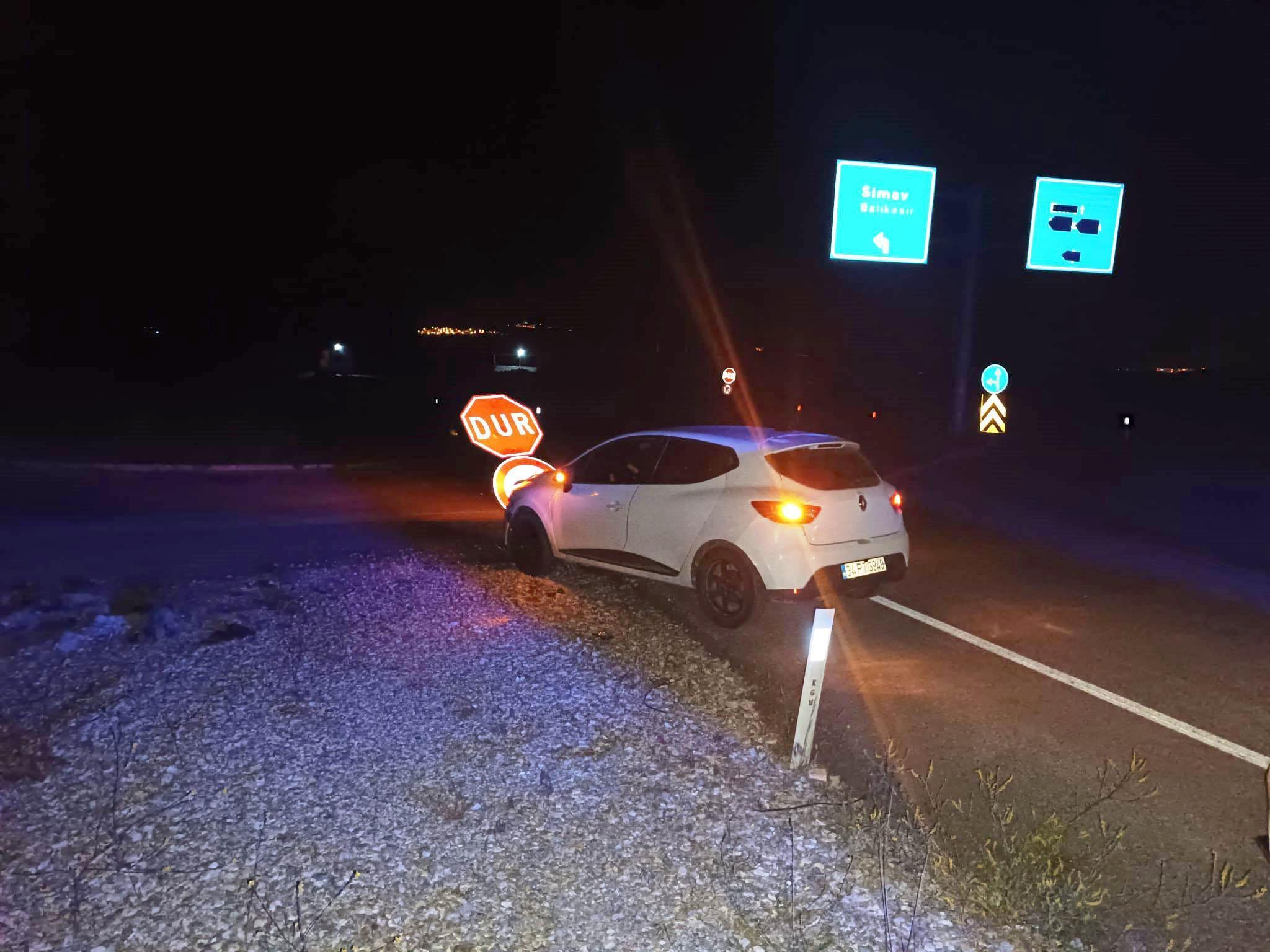 Kaza, gece yarısı Hisarcık-Simav karayolu ilçe giriş kavşağında meydana geldi. Murat. A kullandığı 34 PT 3949 plakalı otomobilin direksiyon hakimiyetini kaybetti. Savrulan otomobil yol kenarındaki ‘dur’ levhasına çarptı. Sürücü kazayı almadan atlatırken, yanındaki arkadaşı Mustafa A. yaralandı. Kazayı görenlerin ihbarıyla gelen sağlık ekiplerince ilk müdahalesi olay yerinde yapılan Mustafa A, ambulansla Emet Dr. Fazıl Doğan Devlet Hastanesi’ne kaldırılarak tedavi altına alındı. Ehliyetsiz ve alkollü sürücü olduğu belirtilen sürücü Murat A.’ya 59 bin lira idari para cezası uygulandı. Kazayla ilgili soruşturma sürüyor. (DHA)