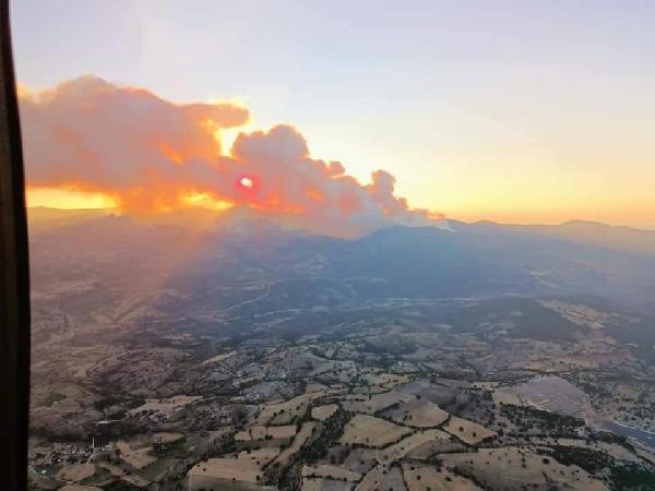 Kütahya'nın Emet ilçesi Küreci köyü yakınlarında saat 18.00 sıralarında ormanda çıkan ve rüzgarın da etkisiyle kısa sürede 3 noktaya daha sıçrayan yangın nedeniyle gökyüzü kara dumanla kaplandı. Yangına 2 tanker uçak, 6 helikopter, 29 arazöz, 8 su ikmal aracı, 6 dozer, 3 greyder, 8 itfaiye aracıyla ile müdahale ediliyor. Alevlerin tehdit ettiği Küreci köyünde ise tahliye çalışması başlatıldı. Dumanların merkez ve Tavşanlı ilçelerinden görüldüğü belirtildi. (DHA)