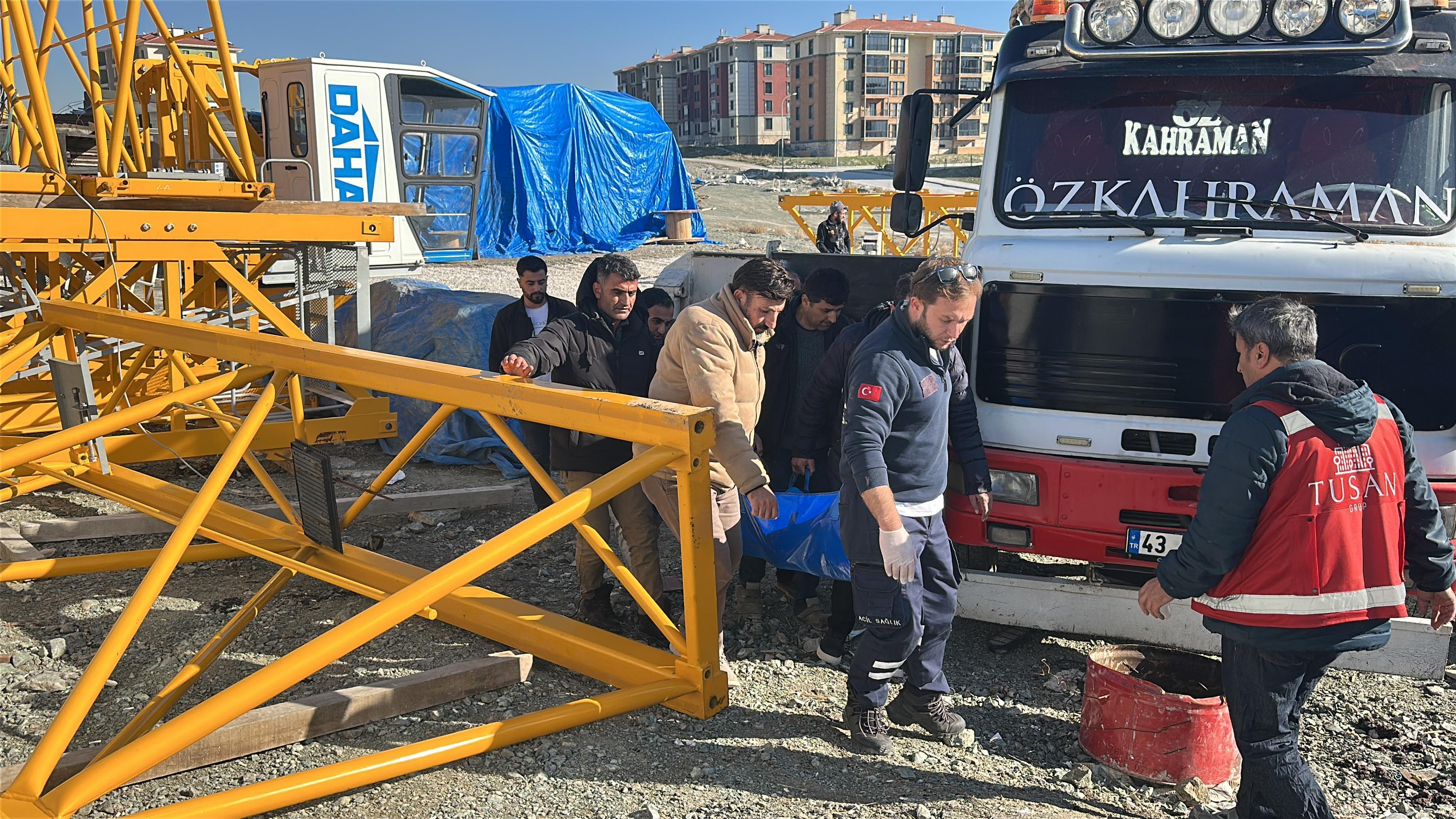 Oğuzhan KILIÇ/ KÜTAHYA, (DHA)- KÜTAHYA’da bir inşaat şantiyesinin kule vinç çalışması sırasında çelik iskeletin çarptığı işçi Abbas E. yaralandı.
