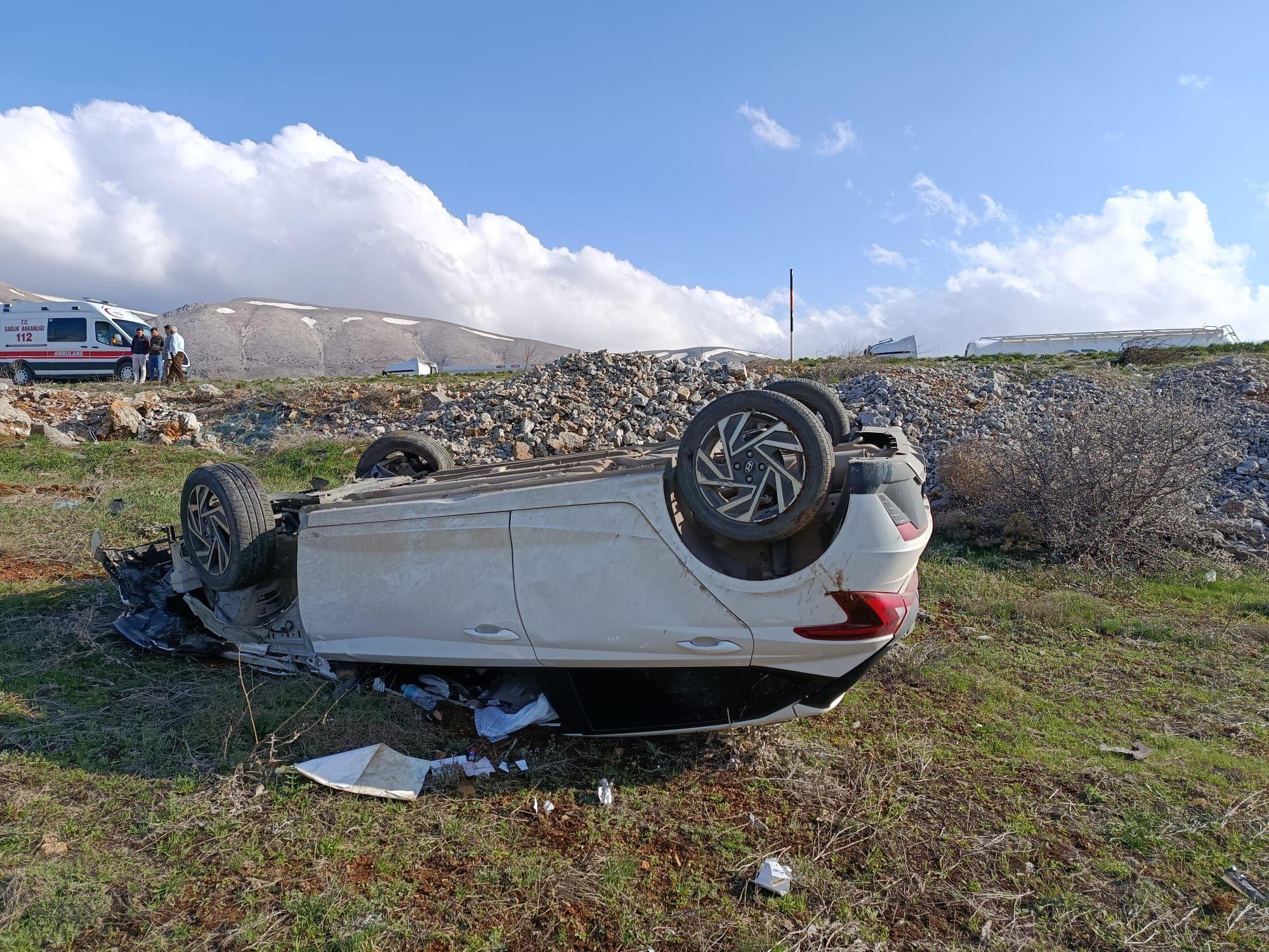 Malatya'da devrilen otomobilin sürücüsü yaralandı