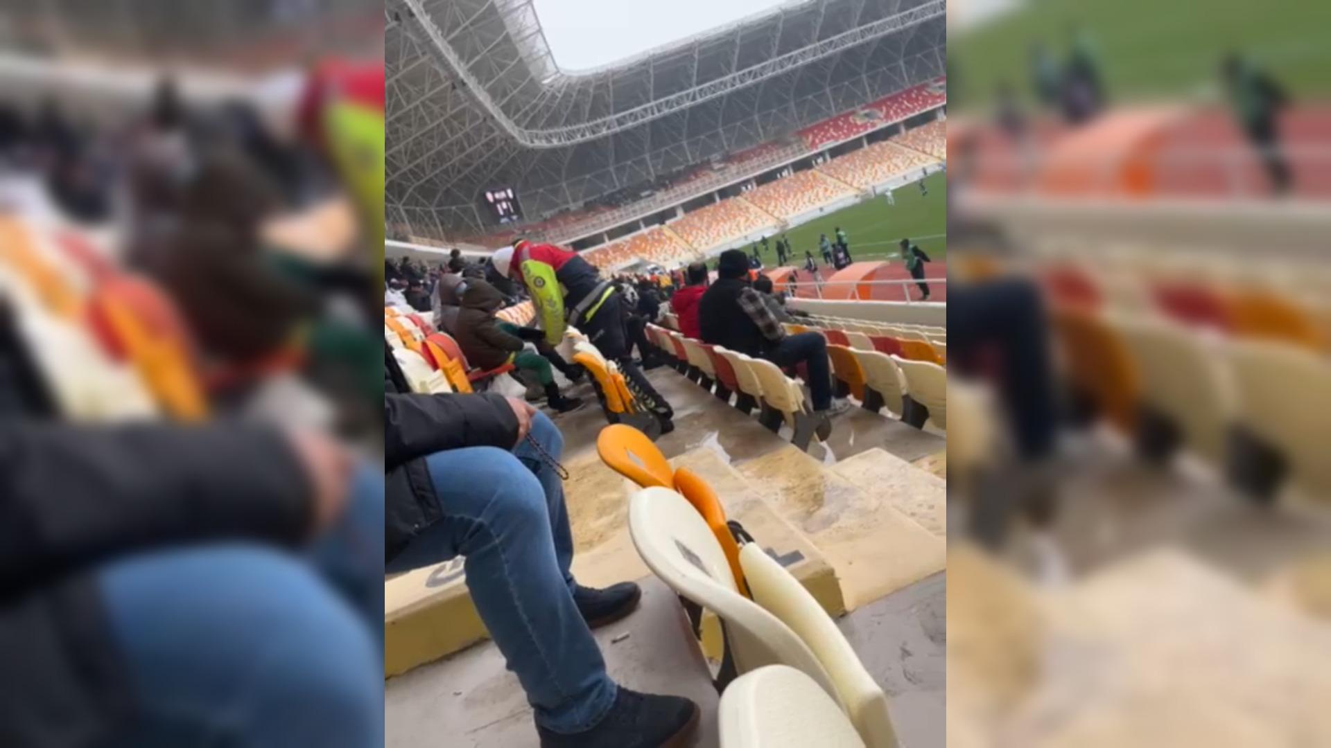 Recep BAĞDAT/MALATYA,(DHA)- MALATYA'da polis memuru stadyumda soğuktan ayakları üşüyen çocuğa kendi çorabını çıkarıp giydirdi. O anlar başka bir taraftar tarafından cep telefonu kamerasıyla kaydedildi.