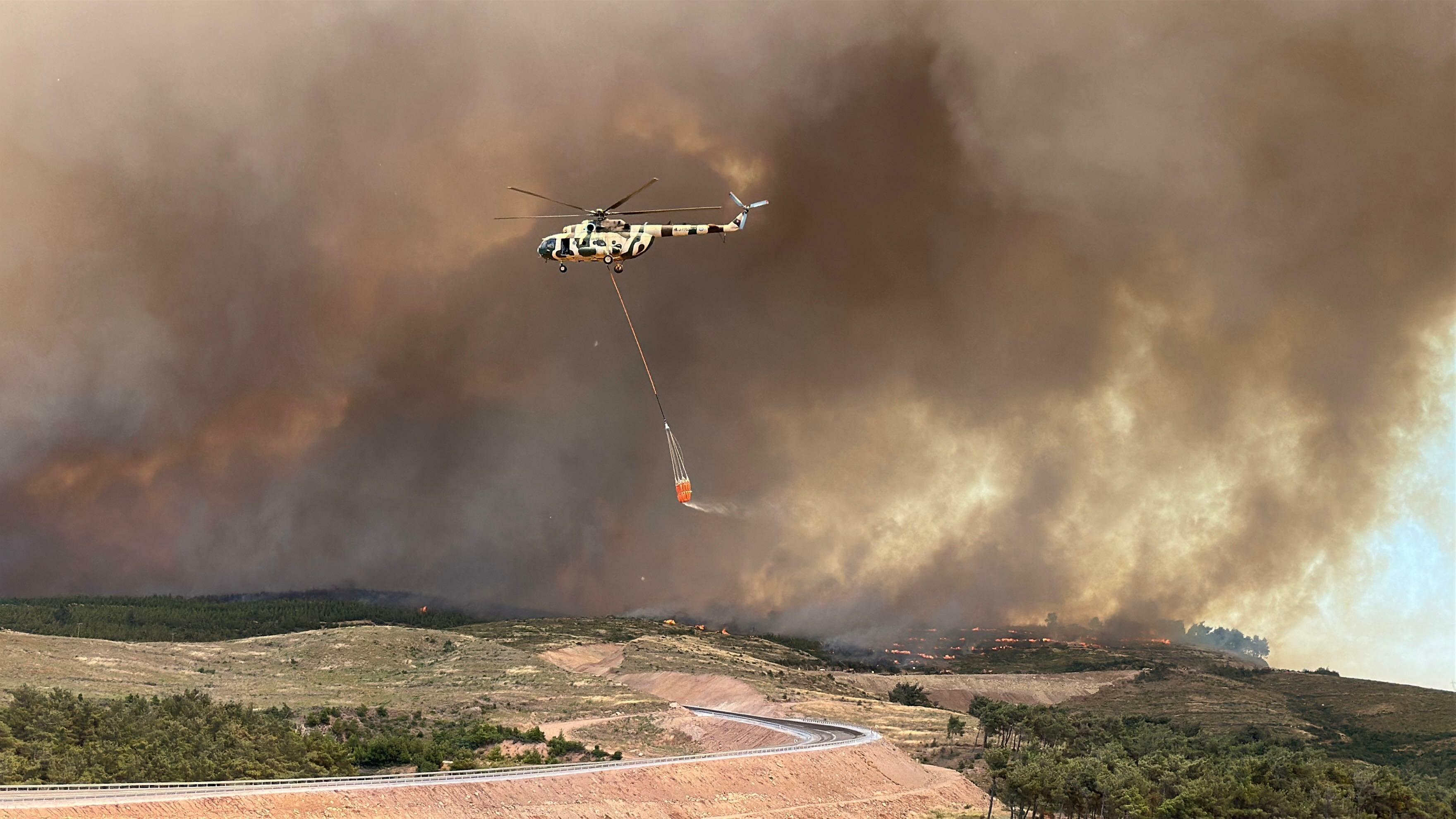 Manisa’nın Akhisar ilçesine bağlı Karaköy Mahallesi’nde çıkan orman yangınında ekip sayısı arttırıldı. Yangına, 4 uçak, 10 helikopter, 17 arazöz, 3 su ikmal, 2 dozer ile müdahale sürüyor.