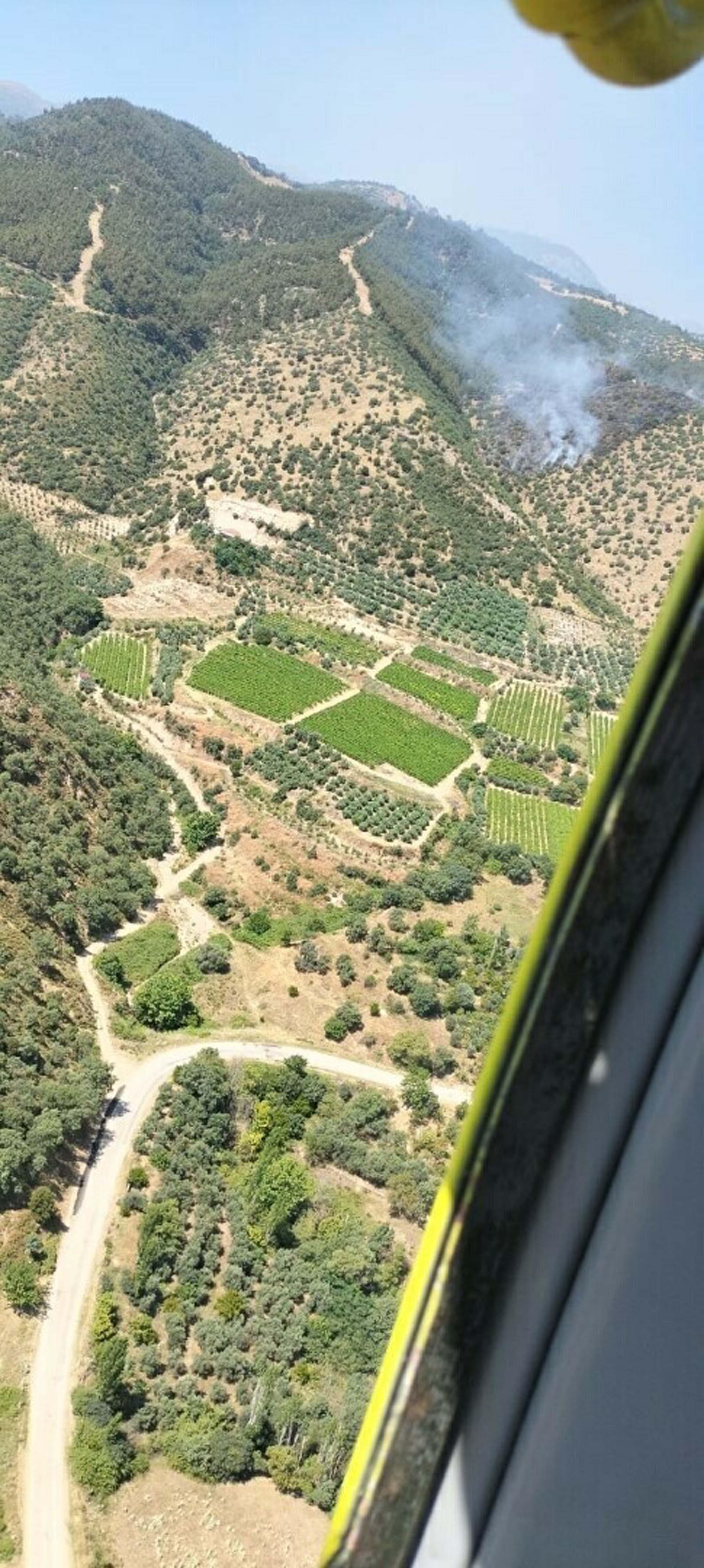 Nurettin DOĞAN/ ALAŞEHİR (Manisa), (DHA)-MANİSA'nın Alaşehir ilçesinde makilikte başlayan yangın ormana sıçradı. Ekipler, alevlere havadan ve karadan müdahale ediyor.