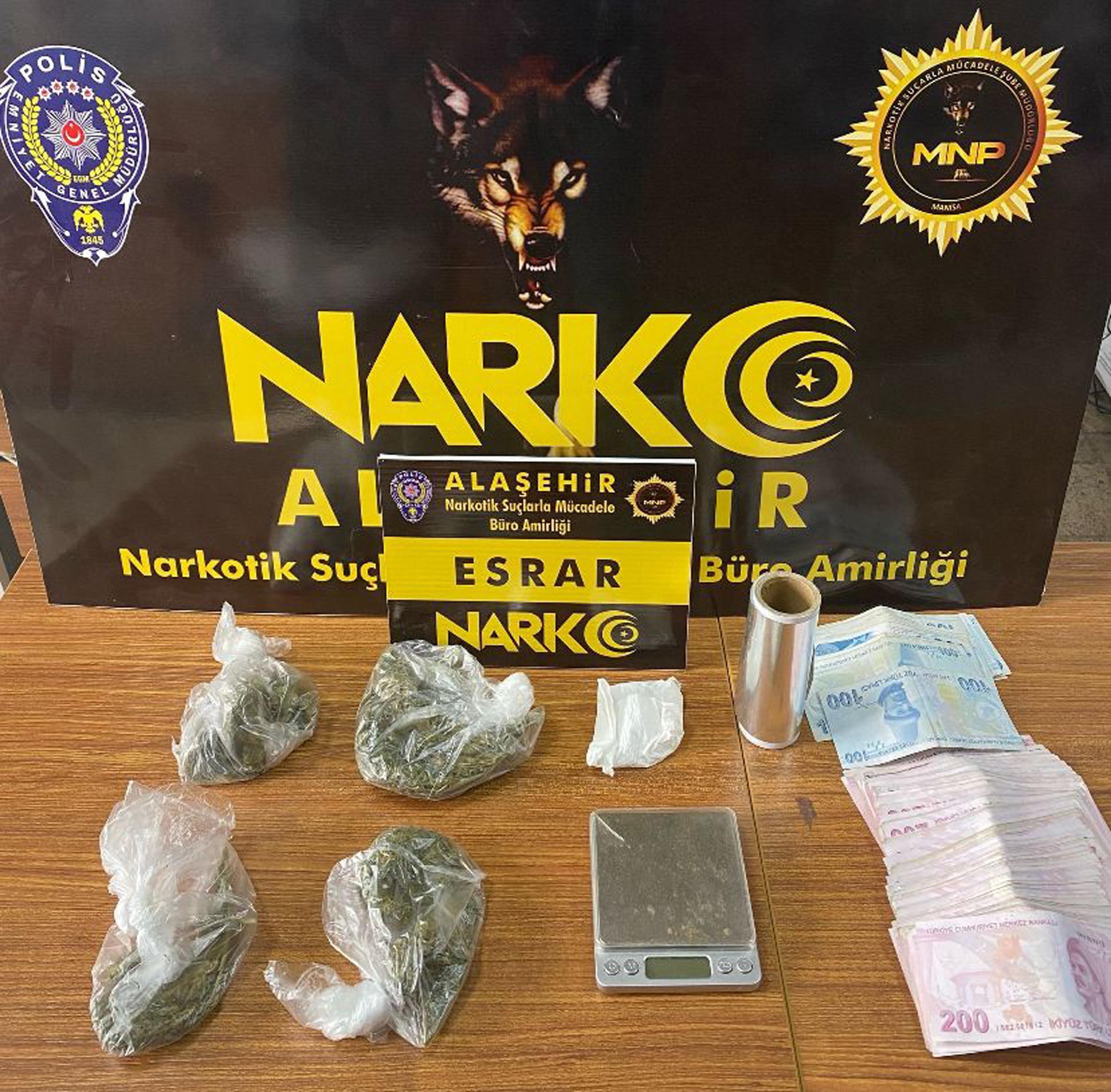 Nurettin DOĞAN / ALAŞEHİR (Manisa), (DHA)-MANİSA'nın Alaşehir ilçesinde, iki ayrı evine polisin düzenlediği operasyonlarda toplam 54,45 gram esrarla yakalanan G.Y: (28) gözaltına alındı. Polisteki işlemlerinin ardından adliyeye sevk edilen şüpheli çıkarıldığı mahkemece tutuklandı.