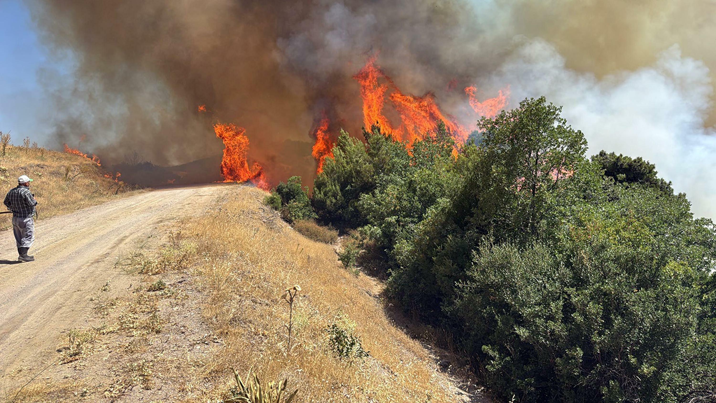 Doğan ÇİZMECİ/MANİSA, (DHA)- MANİSA'nın Gördes ilçesinde tarım arazisinde yangın çıktı. Alevlere, havadan ve karadan müdahale sürüyor.