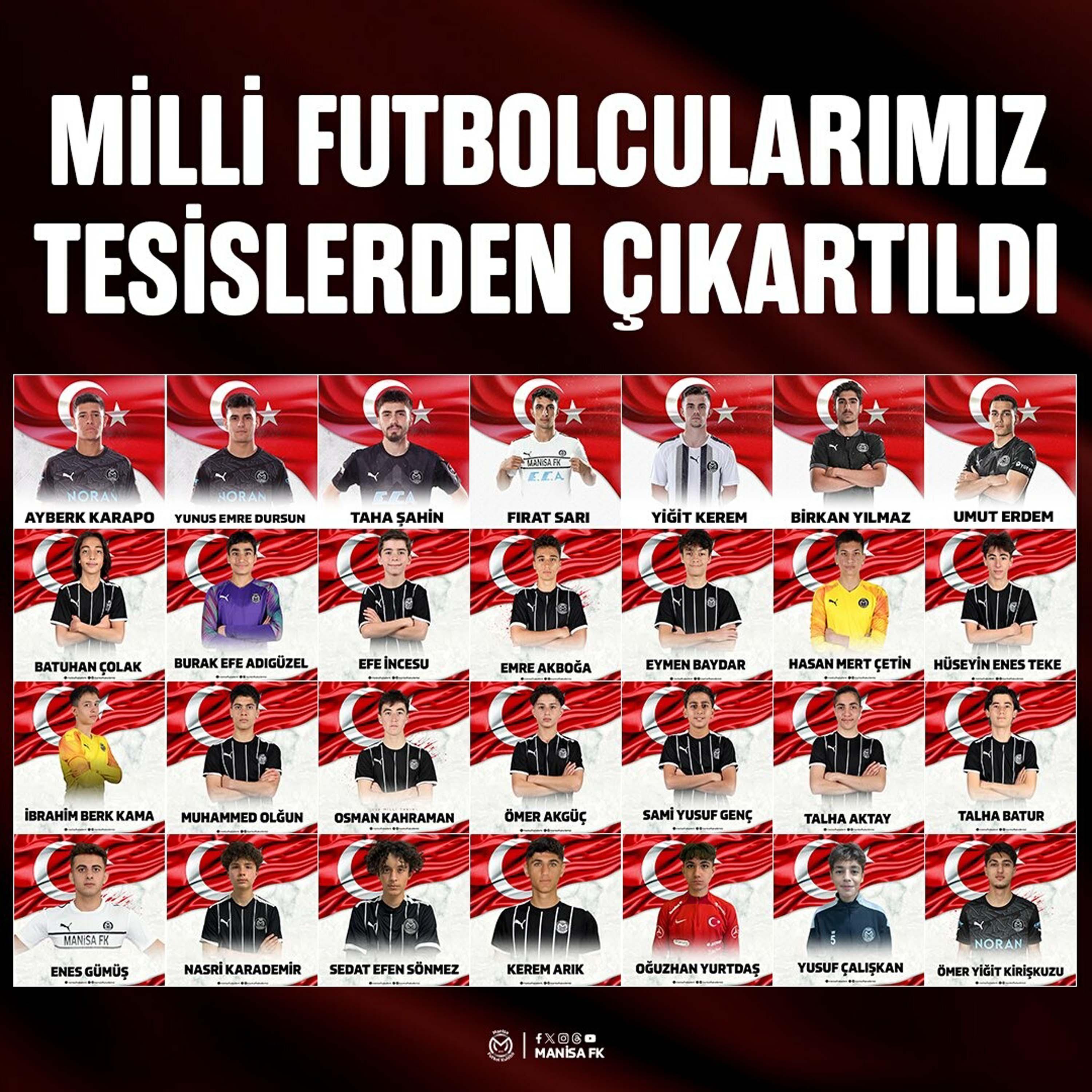 MANİSA, (DHA) - 1'inci Lig ekiplerinden Manisa Futbol Kulübü, yaptığı resmi açıklamada Manisa Büyükşehir Belediye Başkanı Ferdi Zeyrek'in talimatıyla Manisa Futbol Kulübü Akademisi futbolcularının Halil Onultmak ve Tevfik Lav Spor Tesisleri'nden çıkartıldığını kamuoyuyla paylaştı.